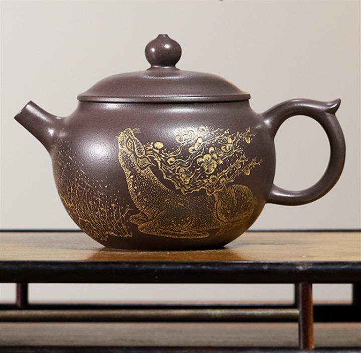 300cc原礦紫泥扁茄瓜仿生光素茶壺POT9221