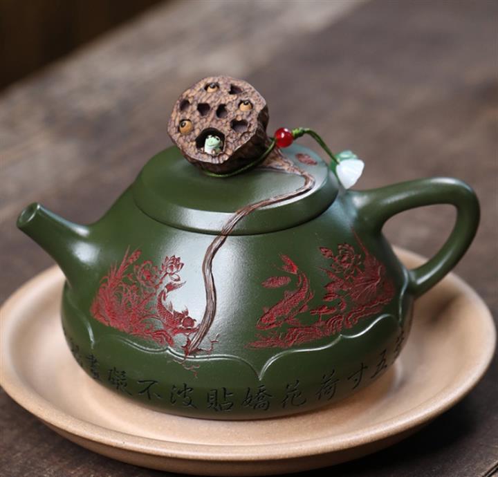 原礦綠泥文人山水漢瓦茶壺POT7498