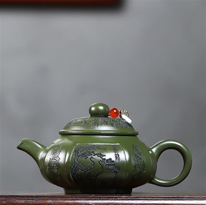 原礦綠泥浮雕魚躍龍門泡茶壺POT7901