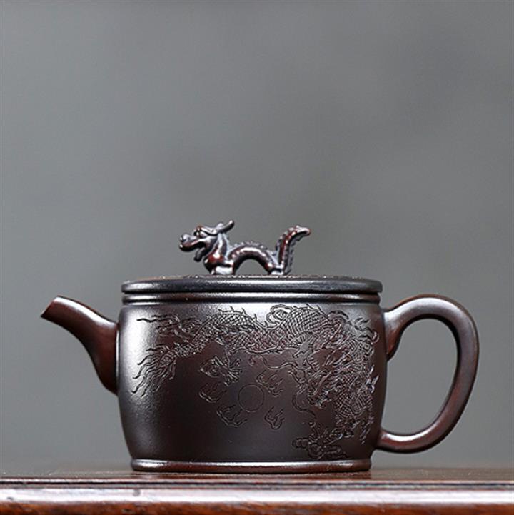 200cc原礦古紅泥遊龍戲鳳漢瓦茶壺POT8137