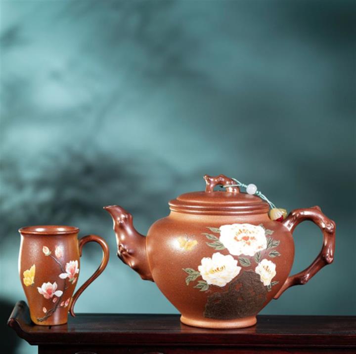 原礦紫泥花開富貴紫砂壺POT5779