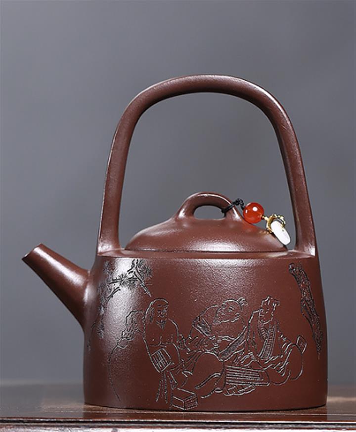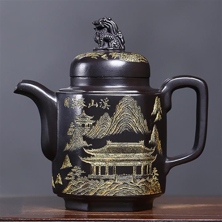 原礦墨綠泥如意山水漢瓦茶壺POT7577