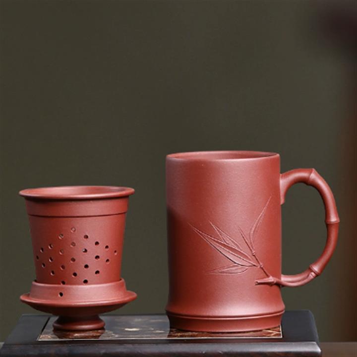 320cc原礦清水泥茶水分離過濾帶蓋高竹節茶杯POT9082