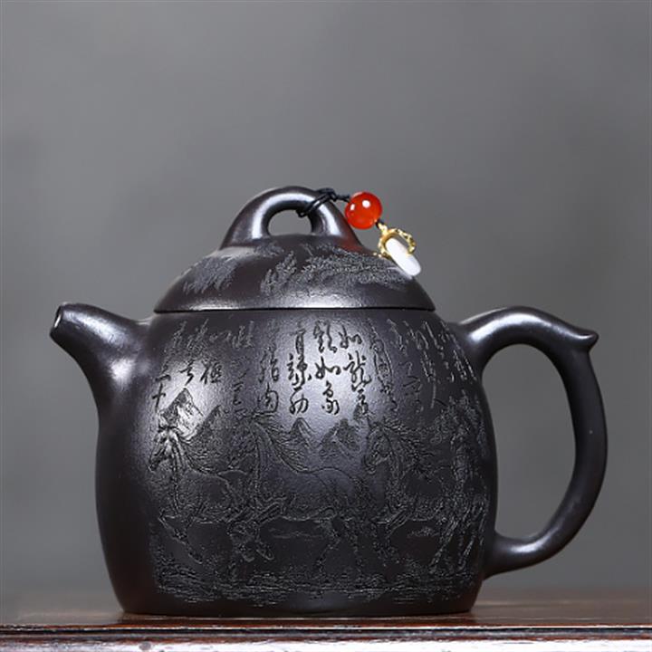 原礦玄鐵石黃八駿秦權茶壺POT7570