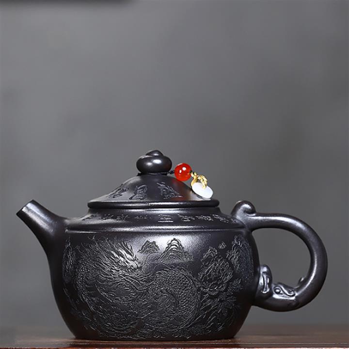 原礦墨綠泥如意山水漢瓦茶壺POT7577