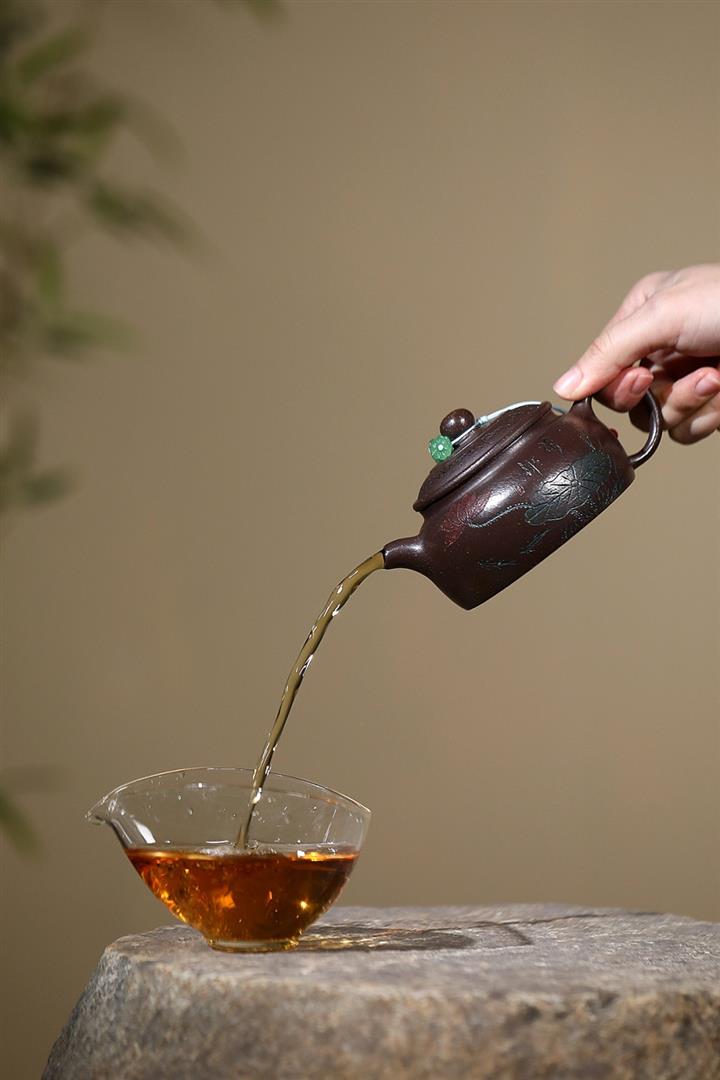 紫砂使用越久,壺身色澤越發光亮照人,氣韻溫雅。紫砂壺長久使用器身會因撫摸擦拭,變得越發溫潤光澤!