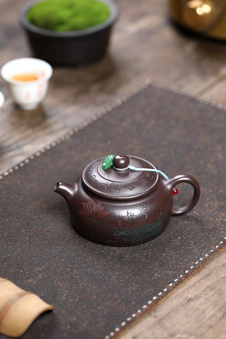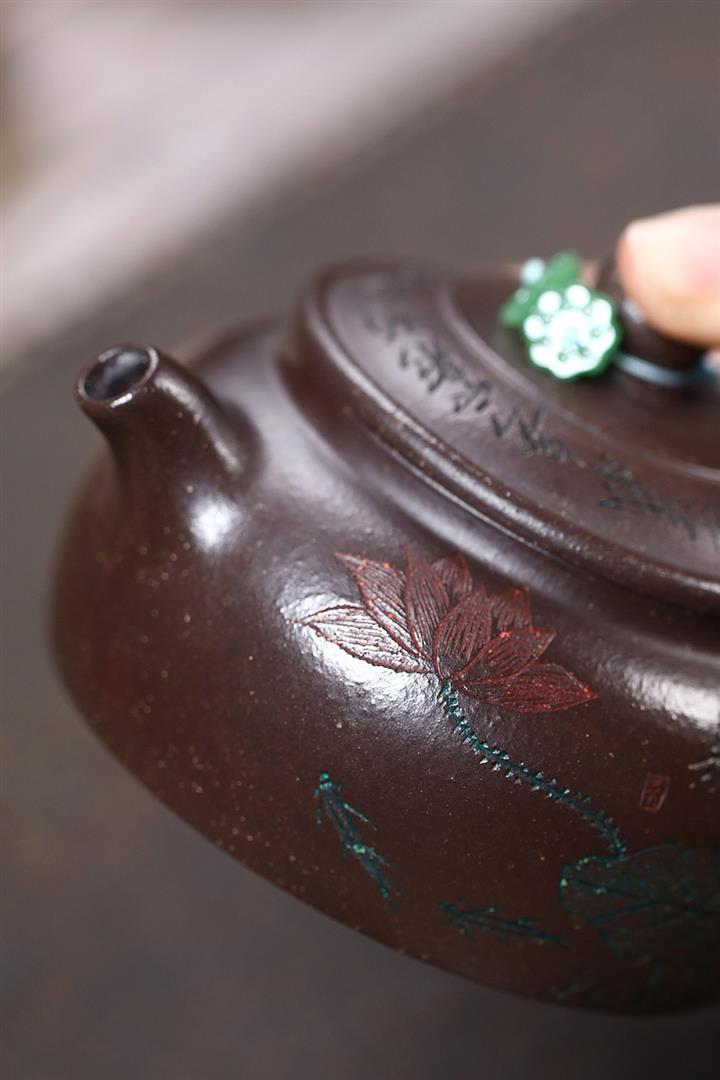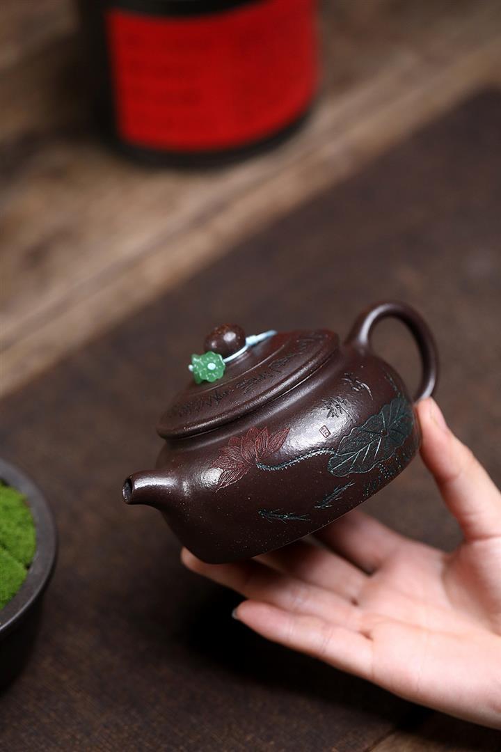 原礦紫玉金砂手工荷趣扁韻壺POT6643