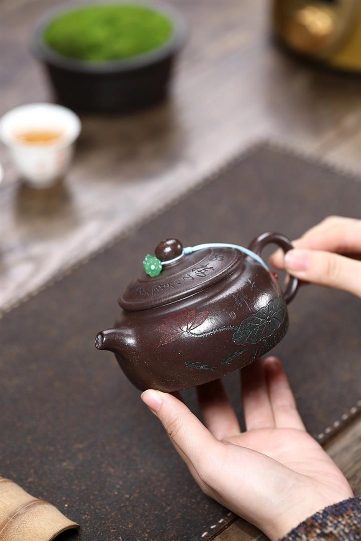 原礦龍血砂手工刻繪福在壺中茶壺POT6845