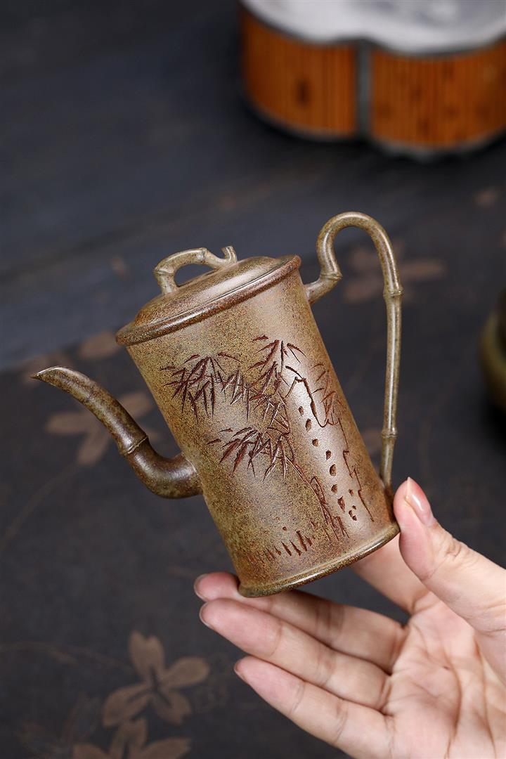 原礦高溫段泥手工刻繪高竹節茶壺POT6784