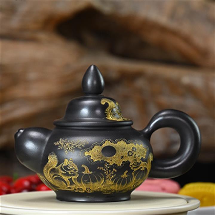 260cc原礦清水泥灑金茄瓜泡茶壺POT9539