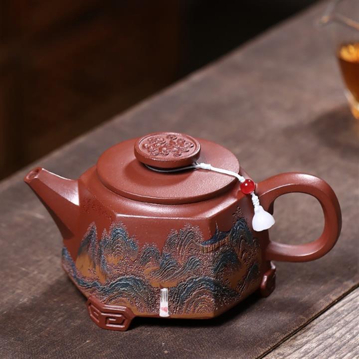 原礦紅降坡彩繪山水三足鼎立茶壺POT7805