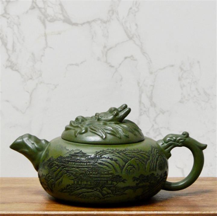 250cc原礦綠泥山水獨占鰲頭泡茶壺POT8511