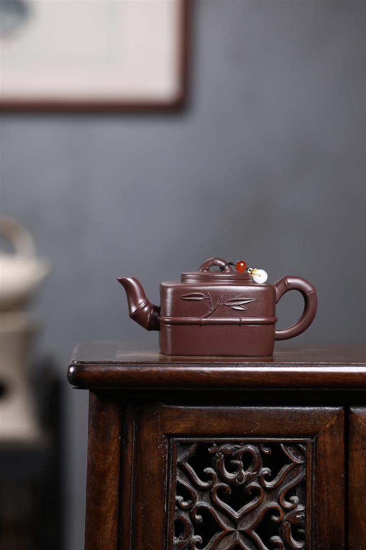 原礦陳腐紫泥四方竹韻茶壺POT7186