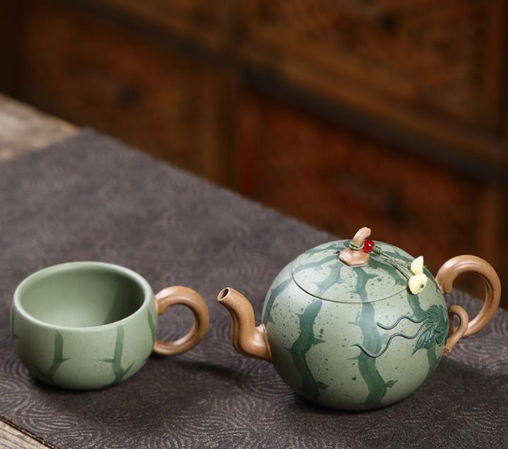 290cc原礦粉漿段泥西瓜紋韻壹壺壹杯套裝泡茶壺POT9962