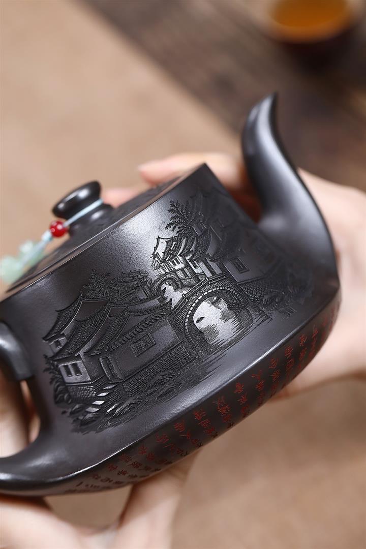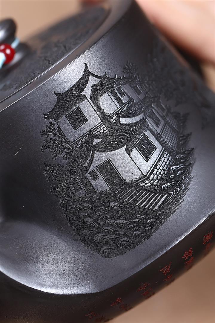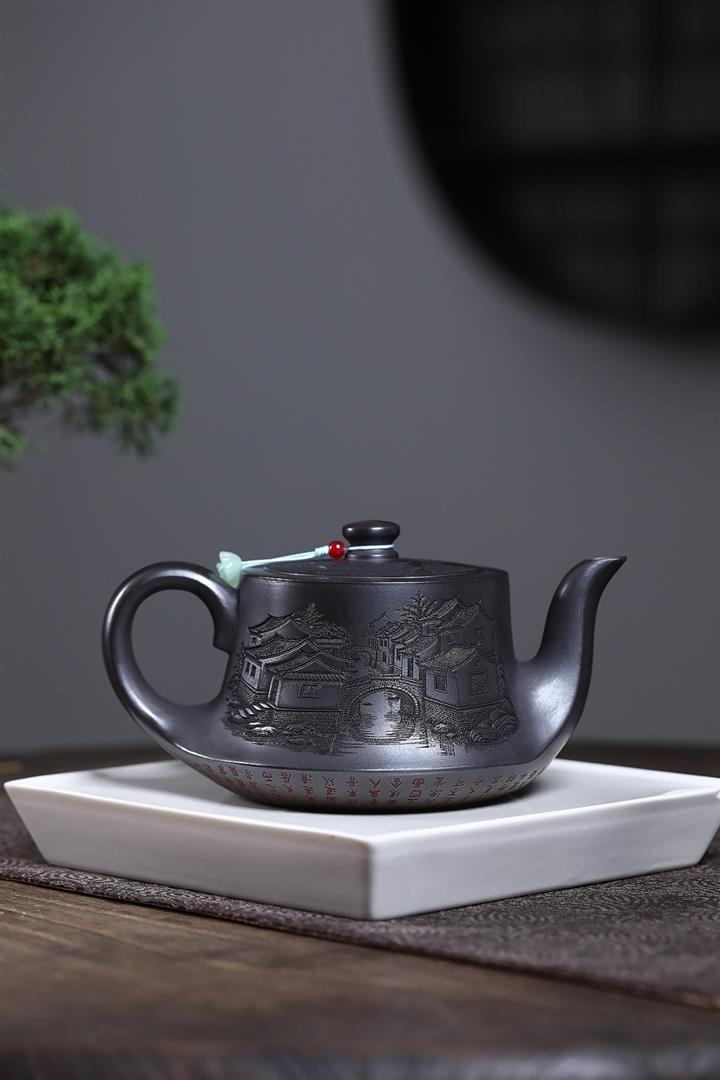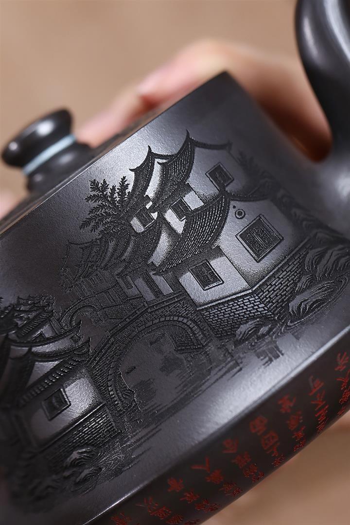 黑朱泥壺金鋼沙扁西施段泥POT160