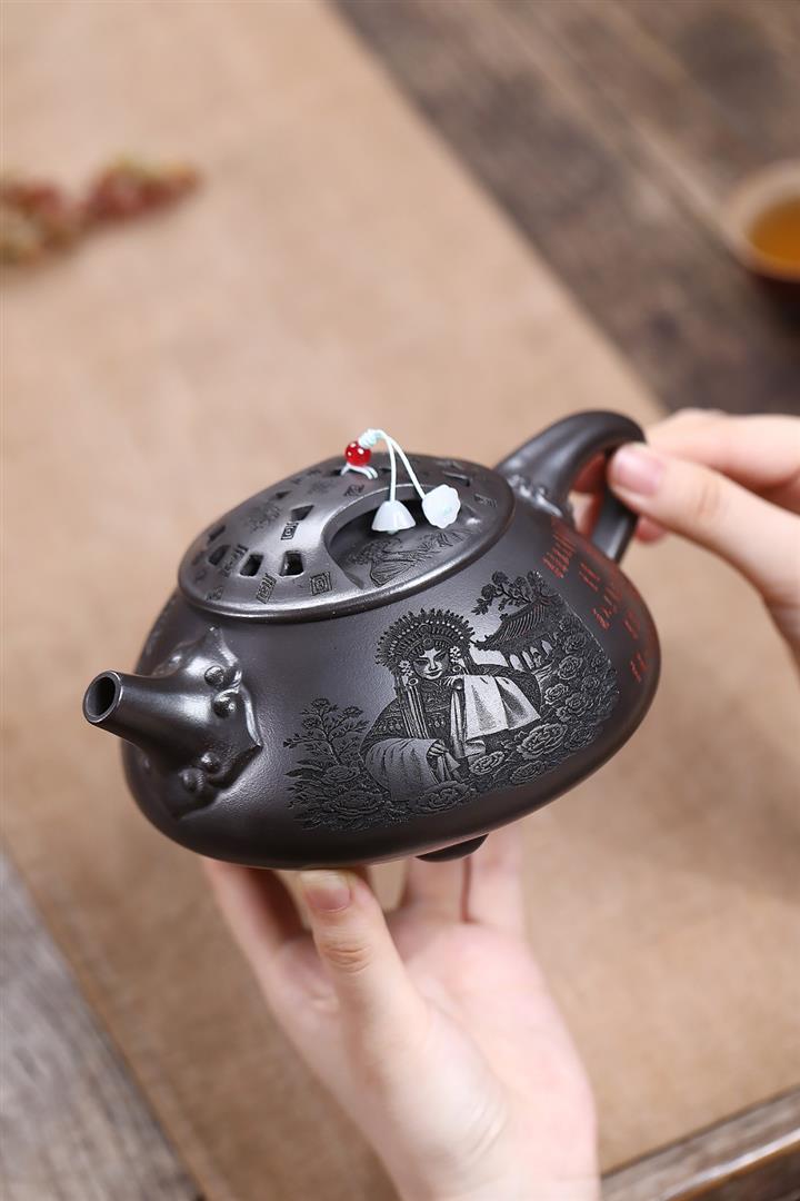 原礦黑朱泥手工雅趣仿古茶壺POT6706