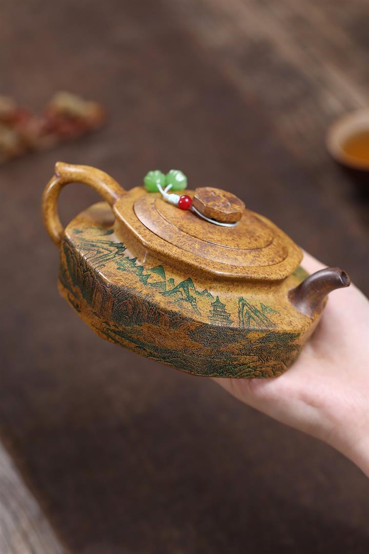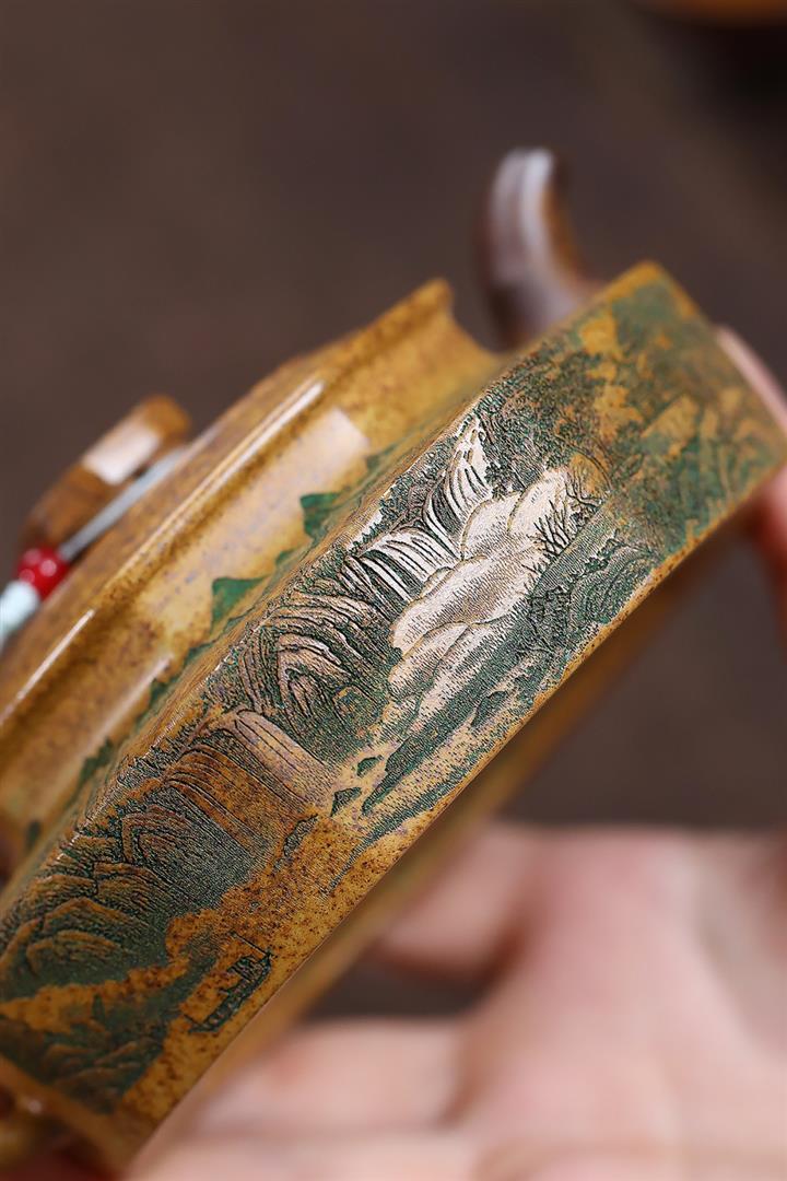 原礦龍骨金砂觀山滿刻華亭茶壺POT7417