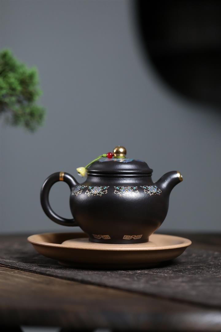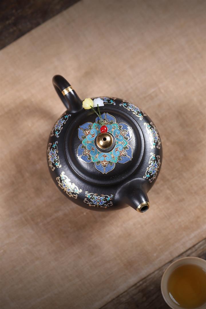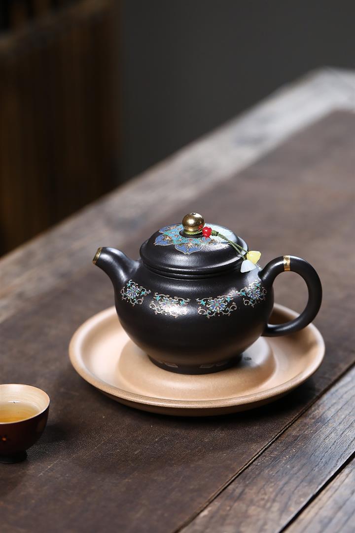 原礦朱泥還原燒琺瑯彩描金掇只茶壺POT7421