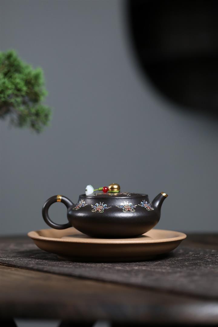 原礦朱泥琺瑯彩描金桑盤茶壺POT7424