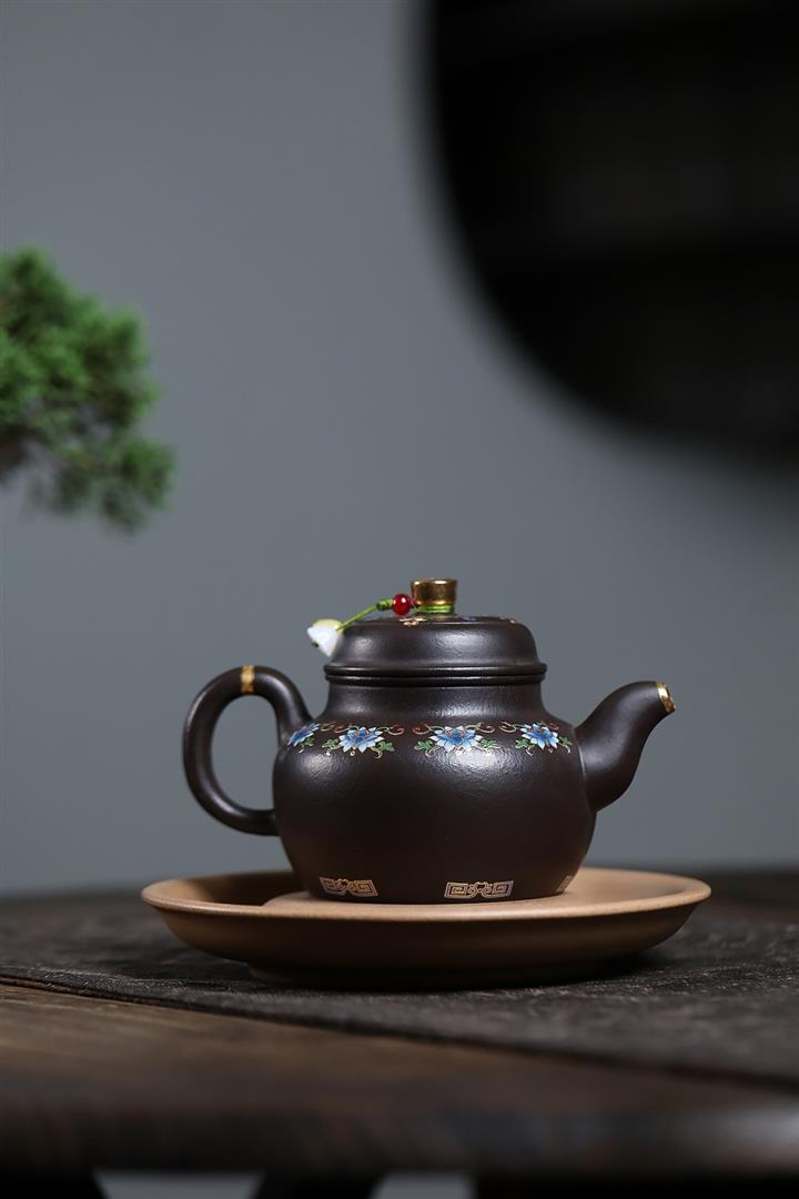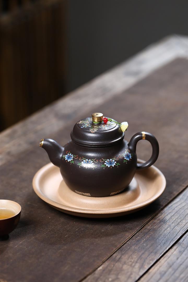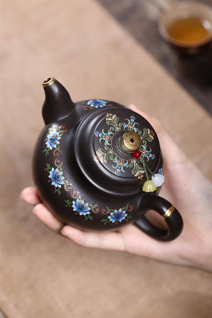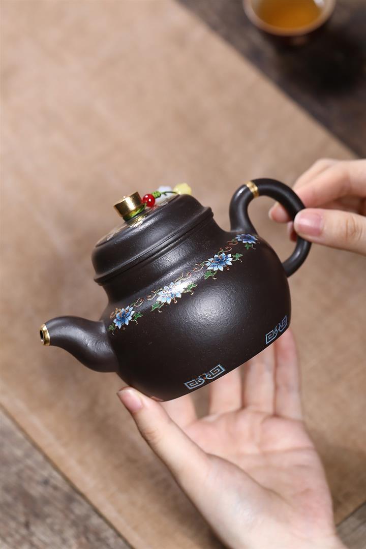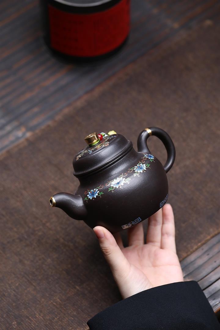 原礦朱泥琺瑯彩描金道洪德鐘茶壺POT7425