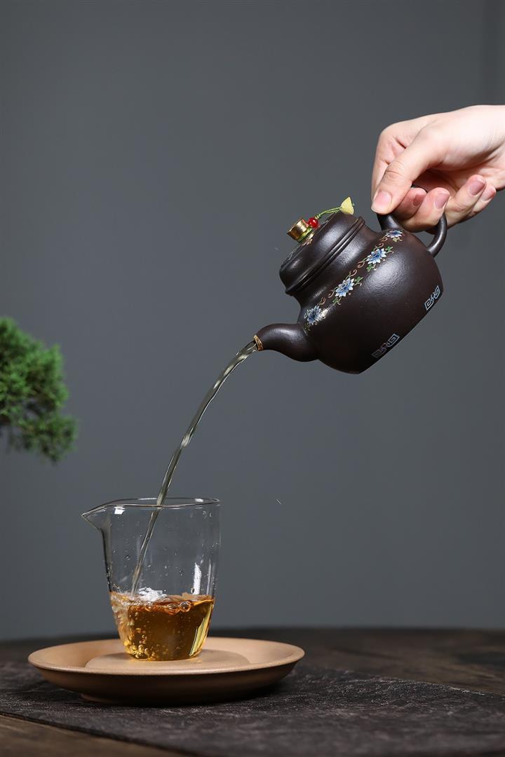 紫砂使用越久,壺身色澤越發光亮照人,氣韻溫雅。紫砂壺長久使用器身會因撫摸擦拭,變得越發溫潤光澤!