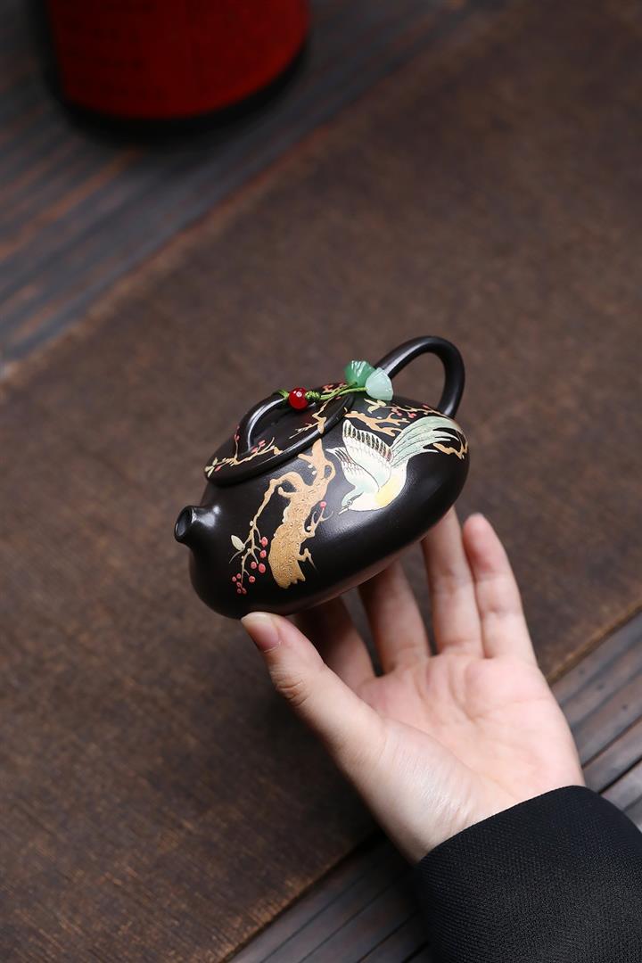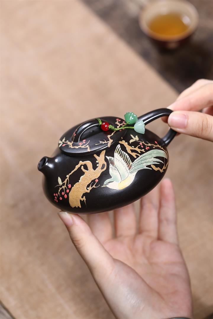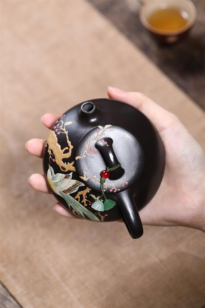 原礦黑朱泥泥繪花鳥憨瓢茶壺POT7426