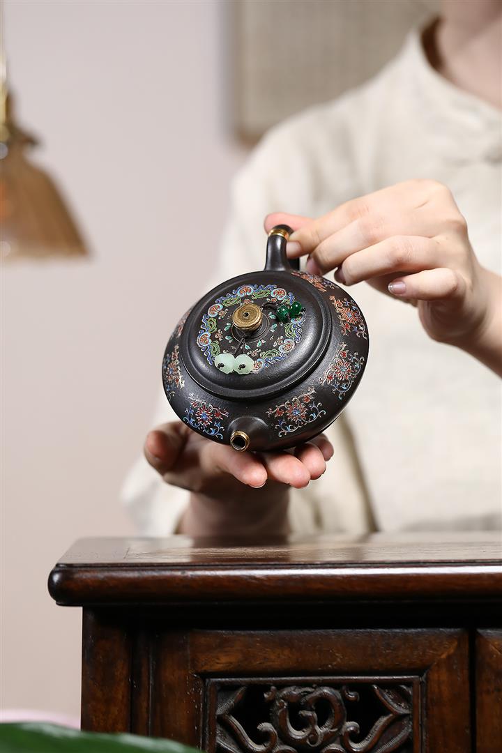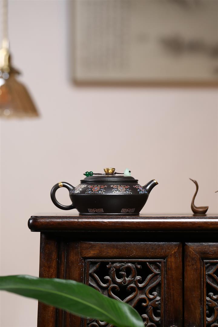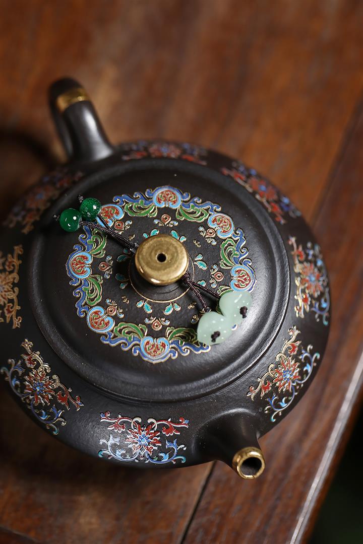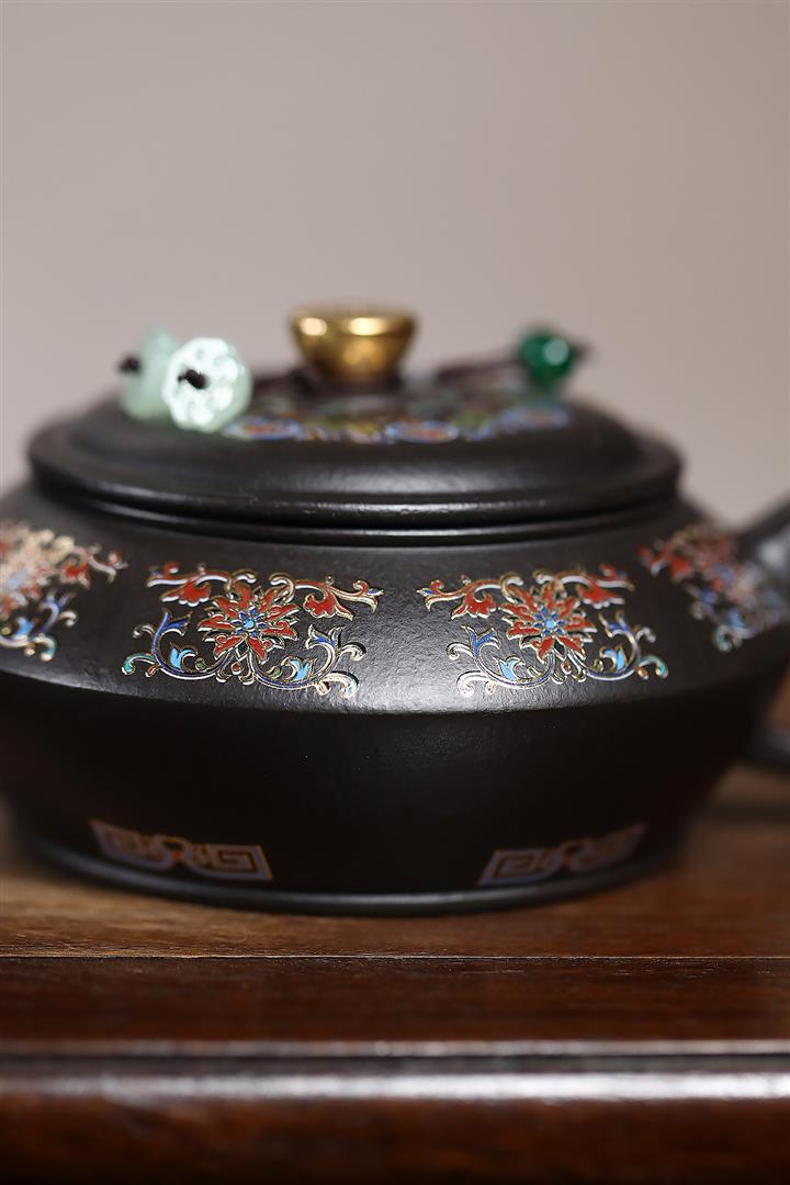 捂灰朱泥琺瑯彩燒曼殊茶壺POT7457