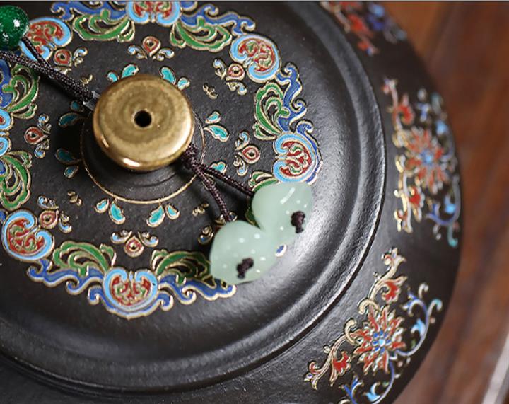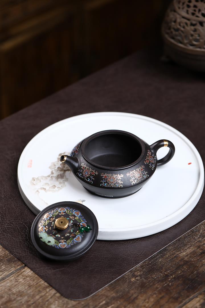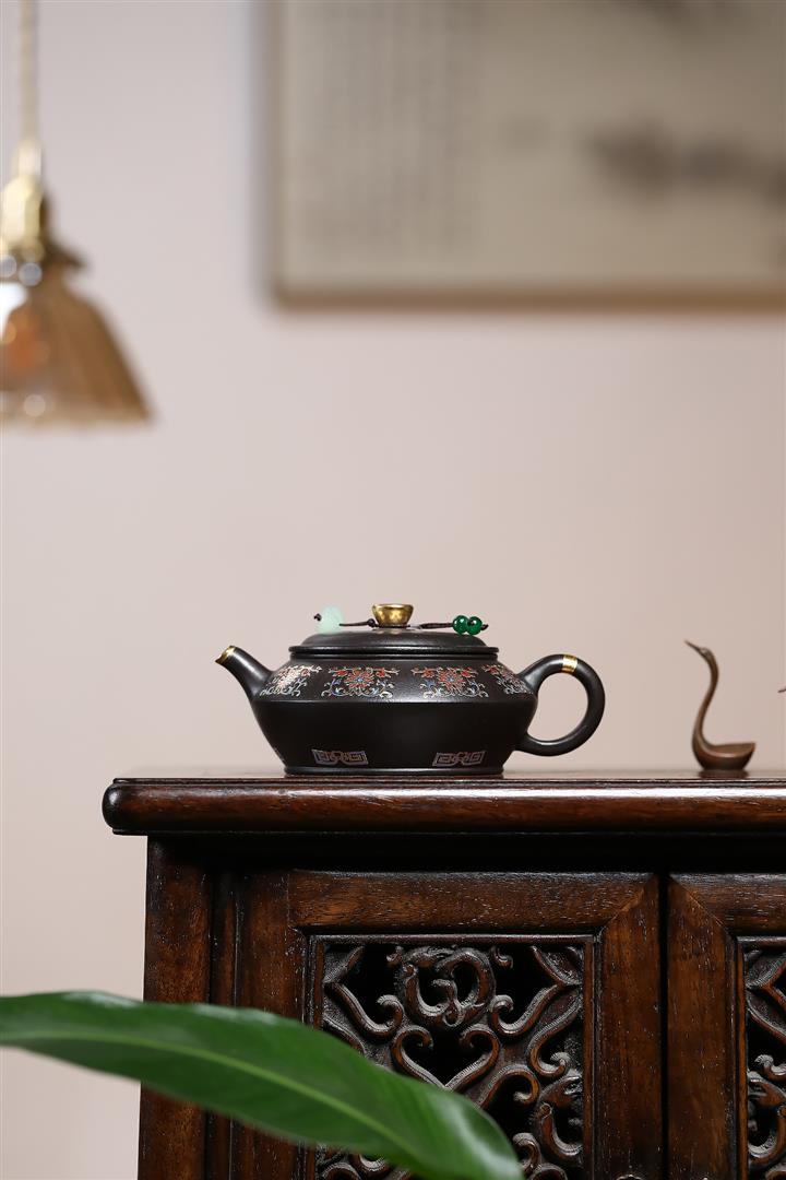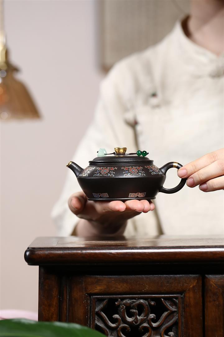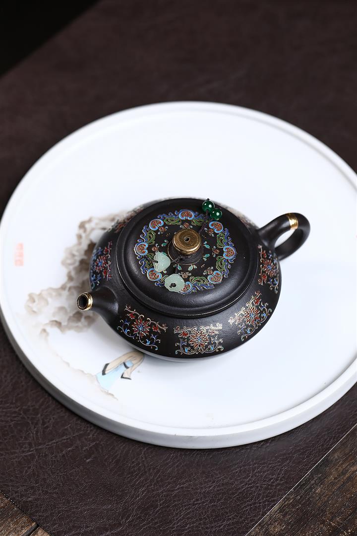 捂灰朱泥琺瑯彩燒曼殊茶壺POT7457