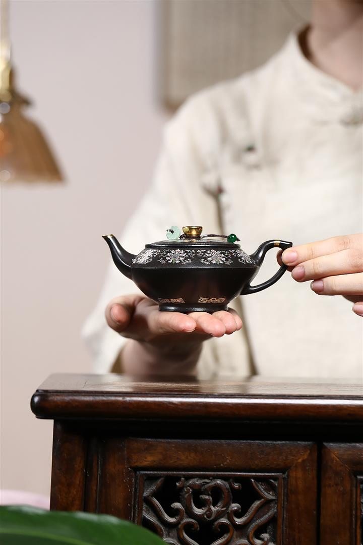 紫砂使用越久,壺身色澤越發光亮照人,氣韻溫雅。紫砂壺長久使用器身會因撫摸擦拭,變得越發溫潤光澤!