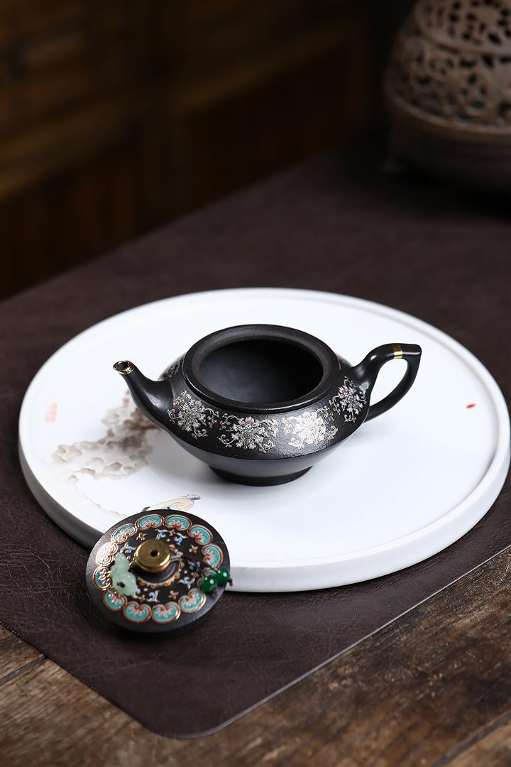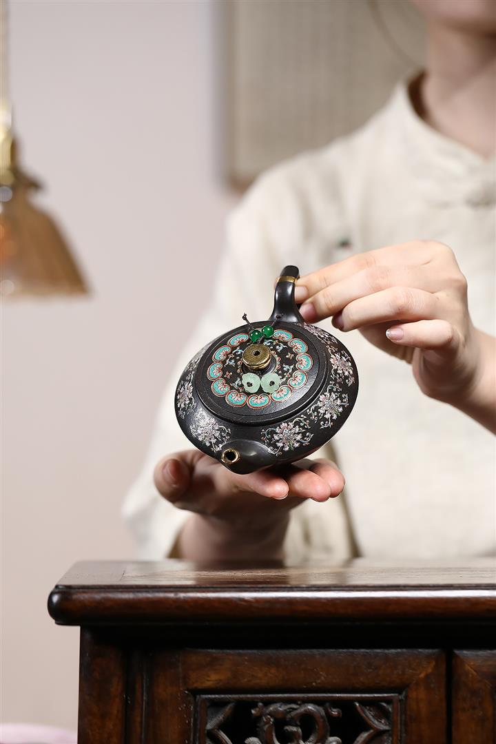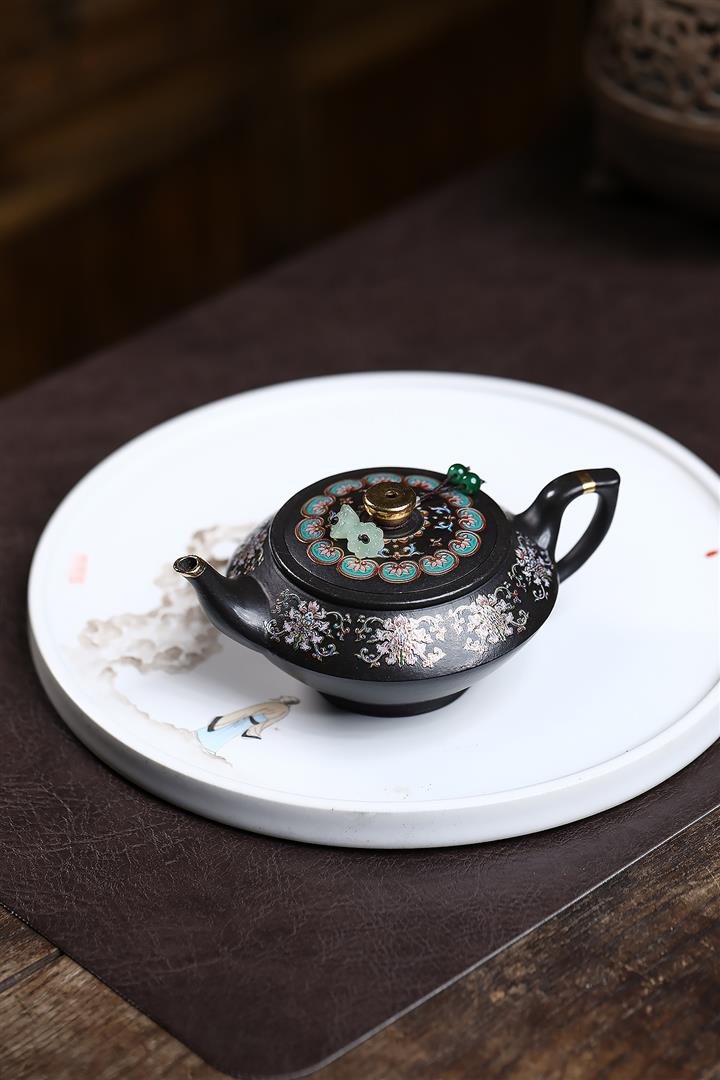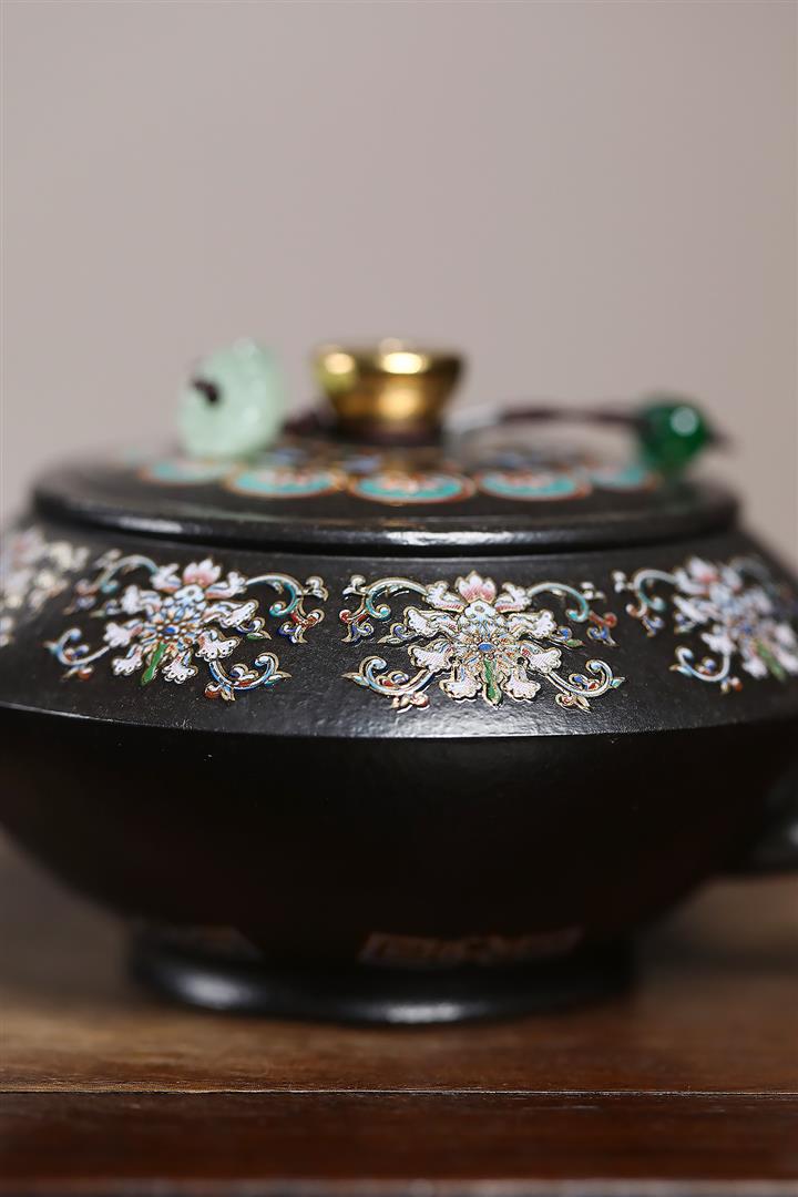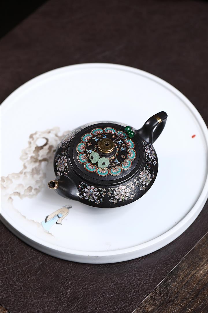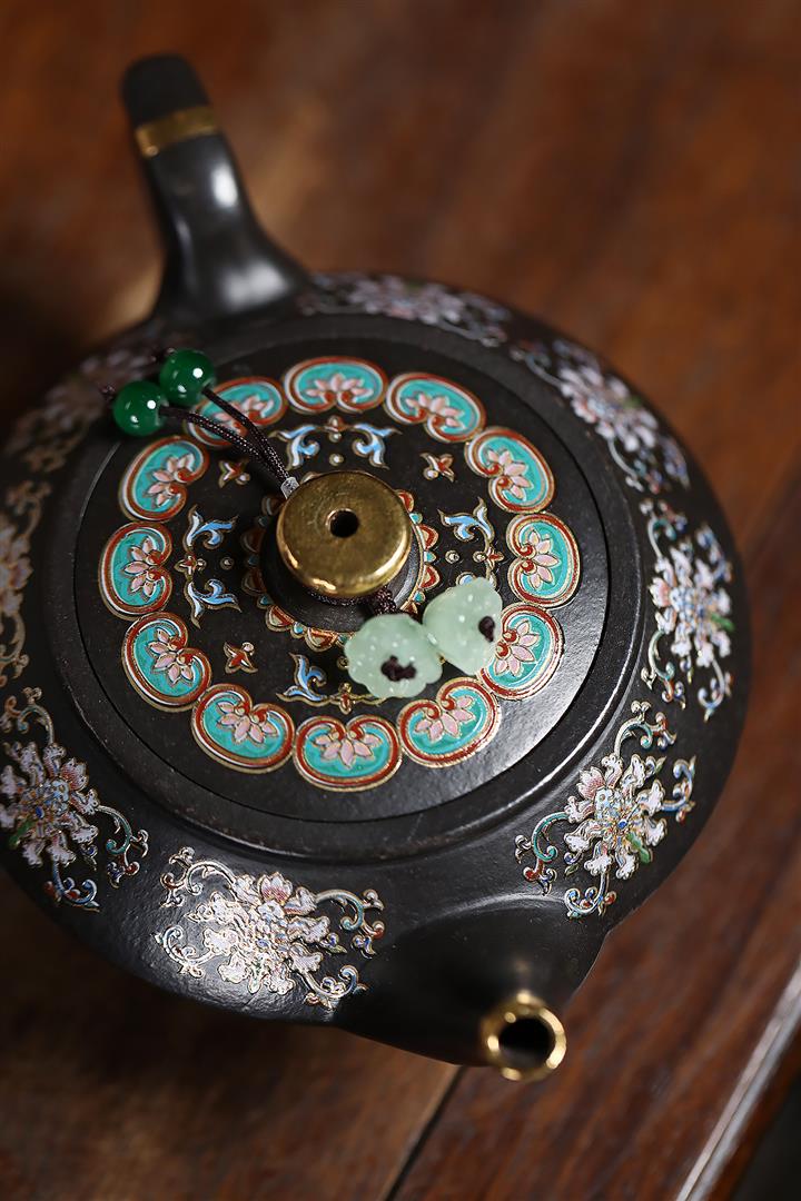 捂灰朱泥琺瑯彩漢雲茶壺POT7458