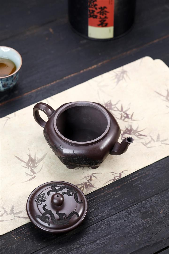原礦老紫泥雙龍戲珠茶壺POT7466