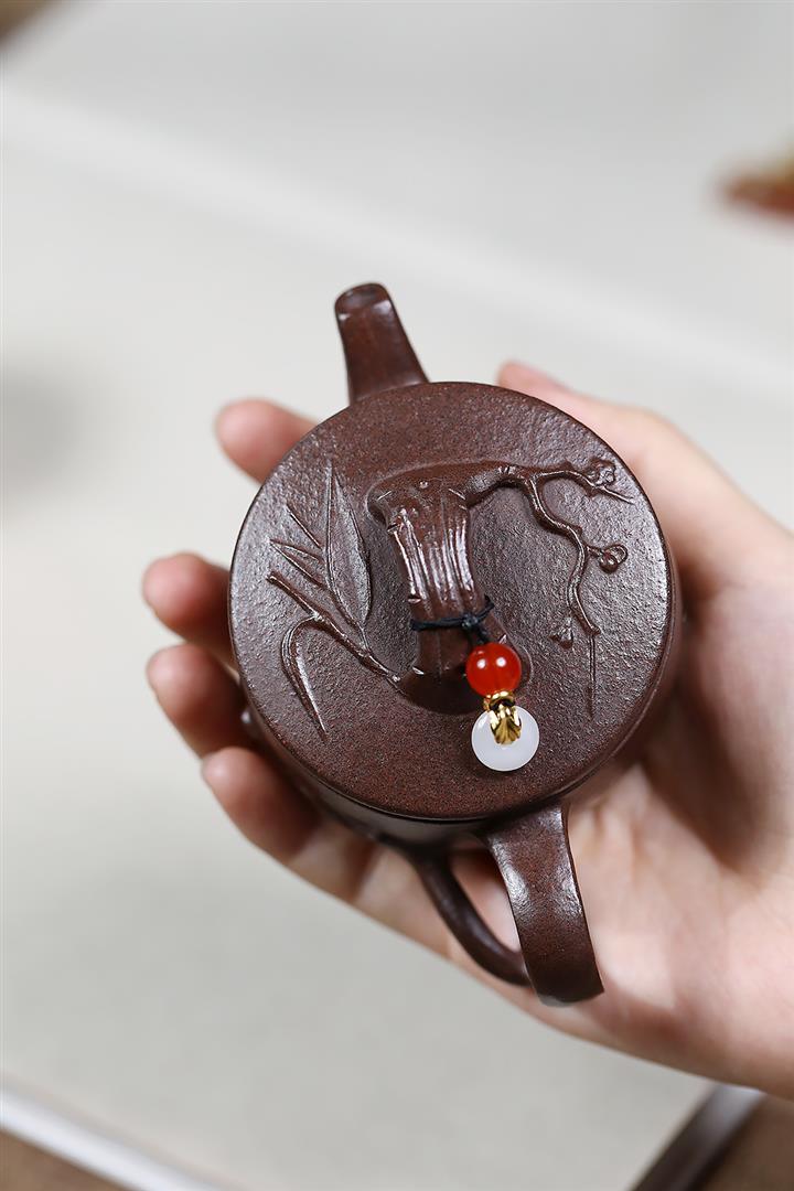 原礦紫泥歲寒三友漢瓦茶壺POT7468
