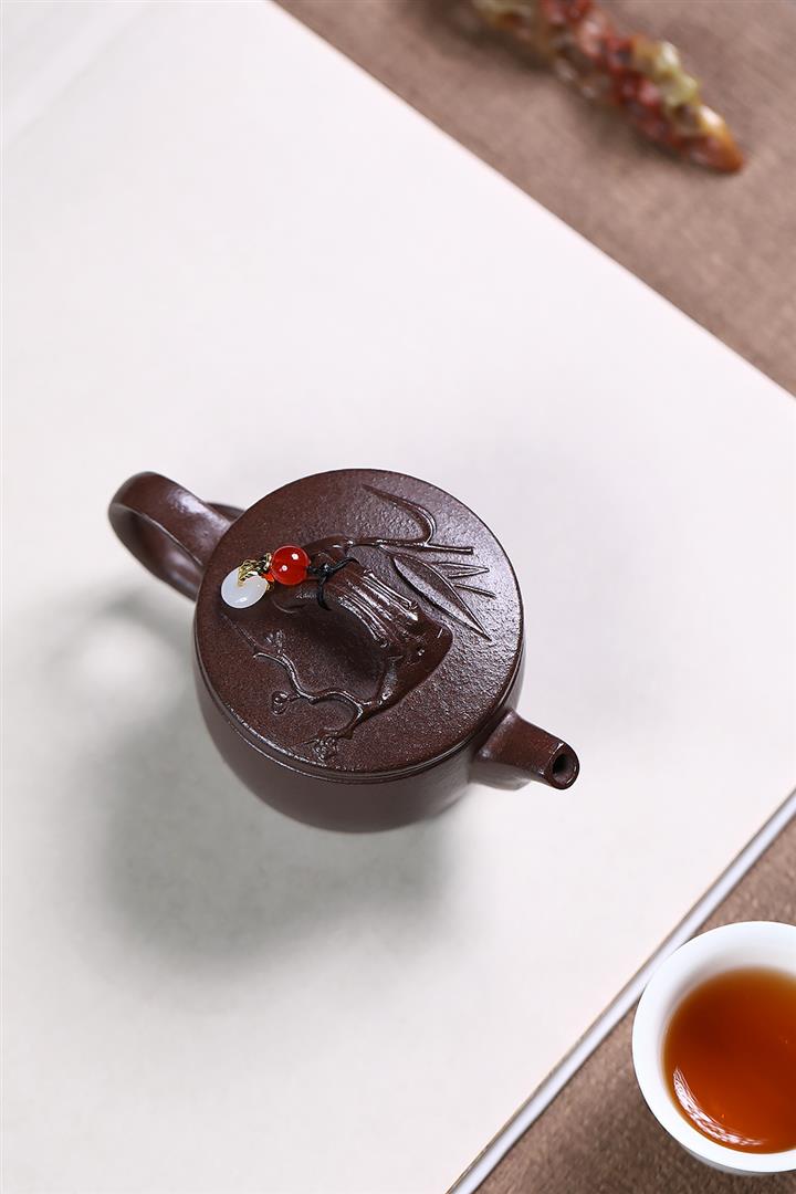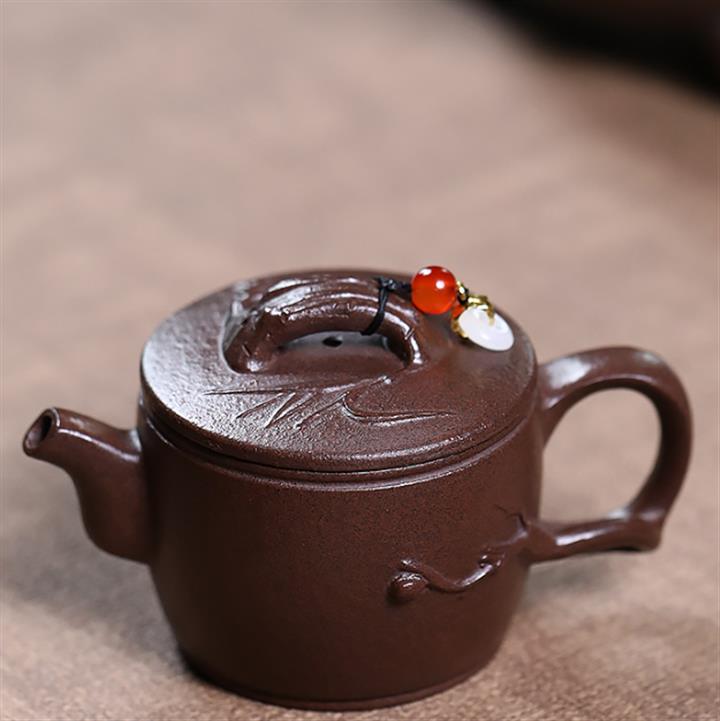 原礦紅皮龍滿刻山水漢瓦茶壺POT7226