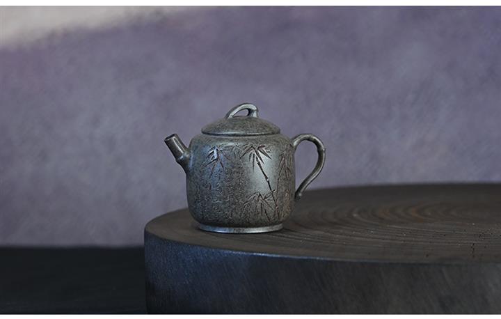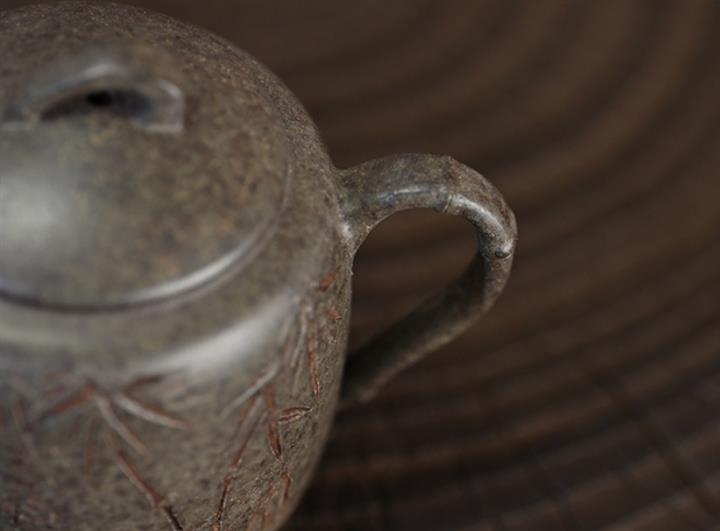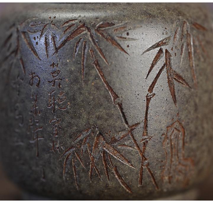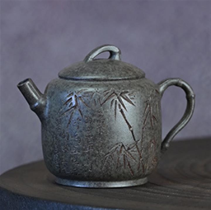 原礦開花泥文竹刻繪茶壺POT7471