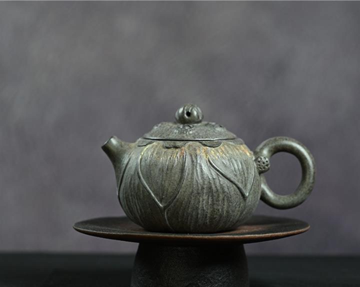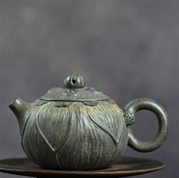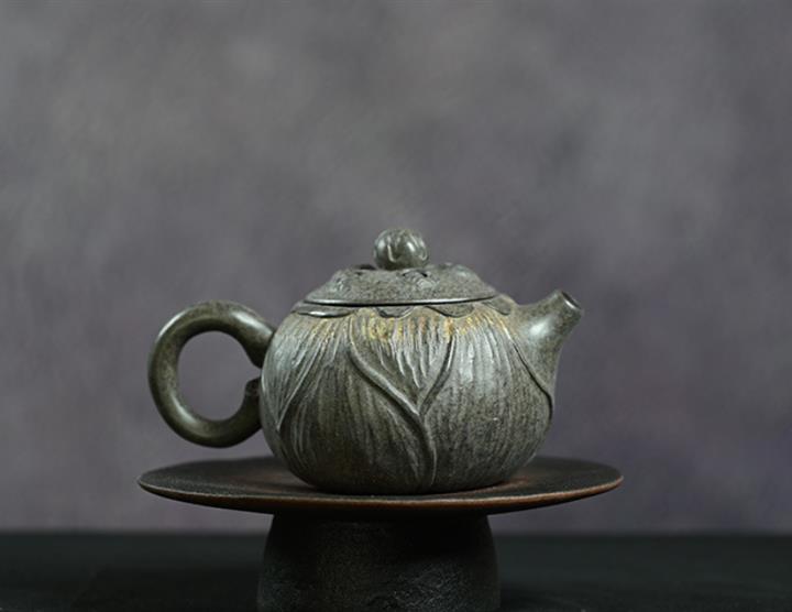龍骨金砂荷葉美人肩紫砂壺POT5837
