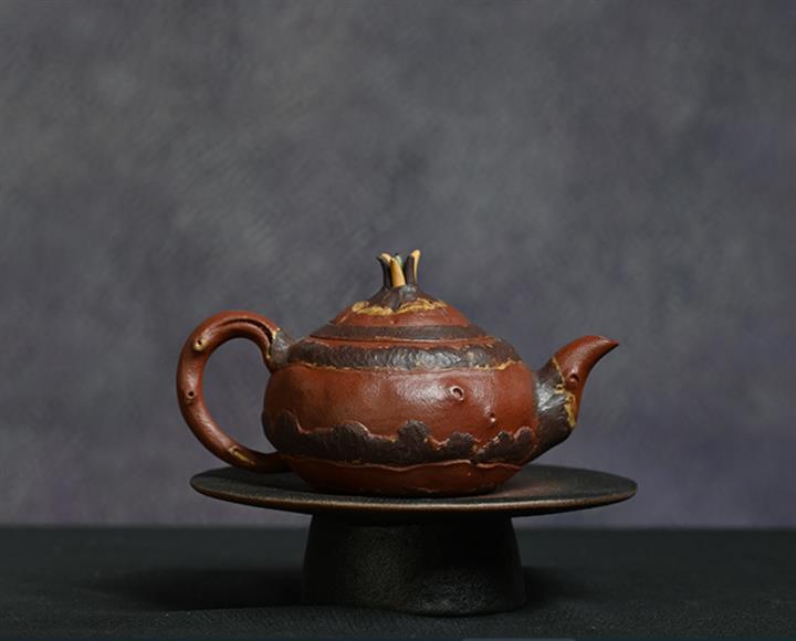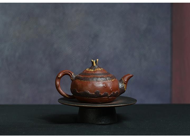 稀有龍血砂平蓋茄瓜紫砂壺POT5759 ​