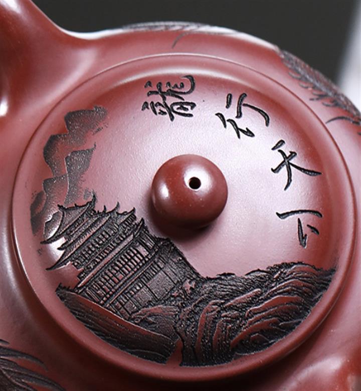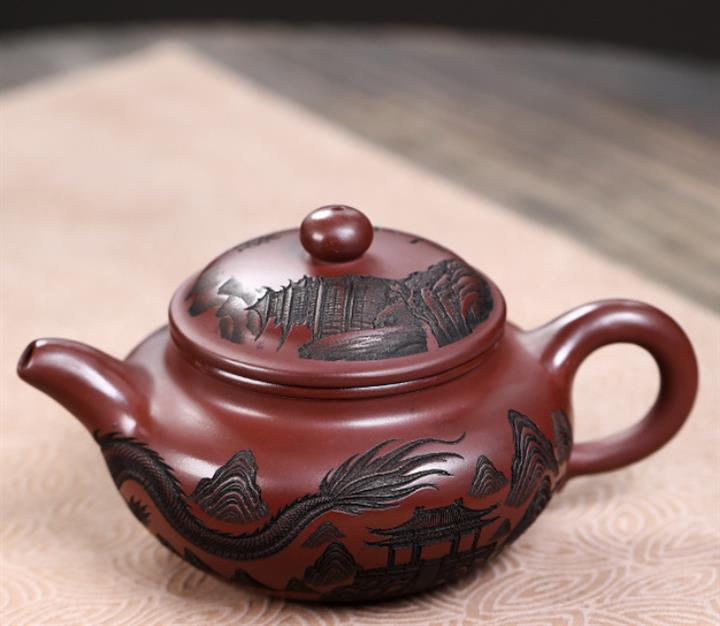原礦紫泥刻繪龍行天下茶壺POT7483