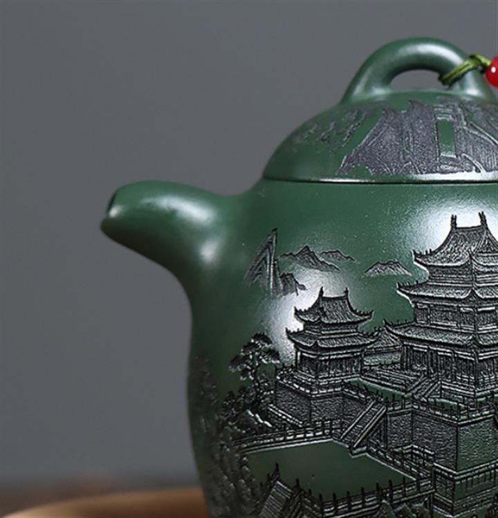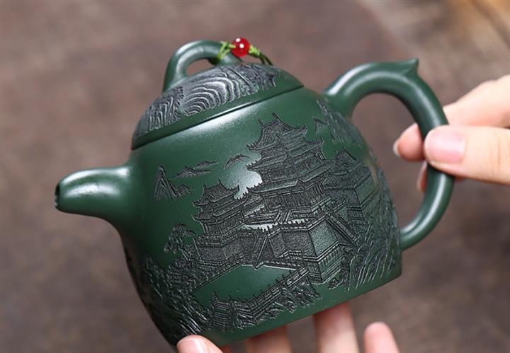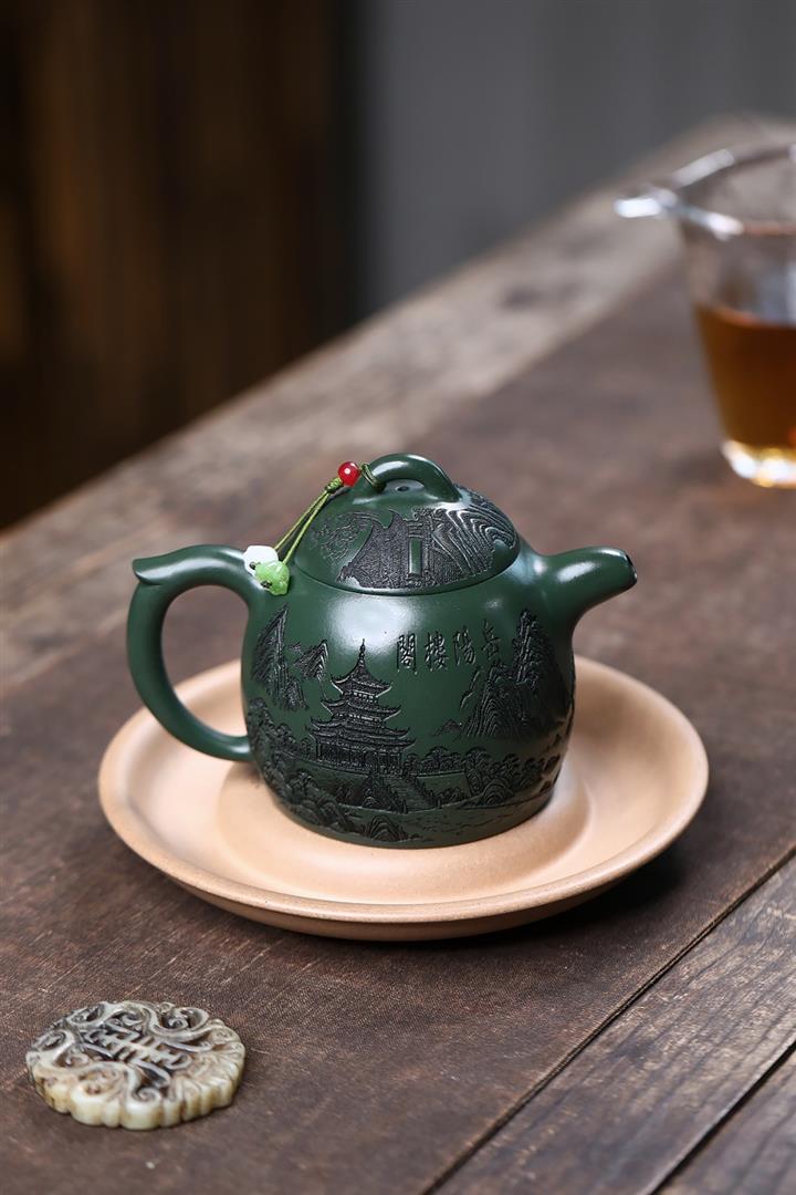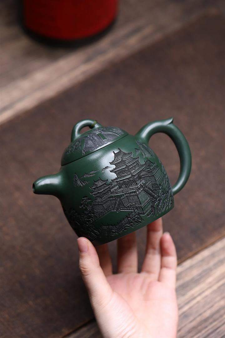 原礦綠泥嶽陽樓閣秦權壺POT7497