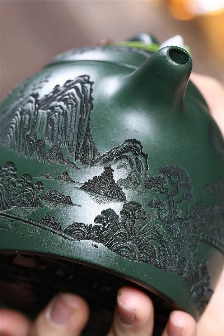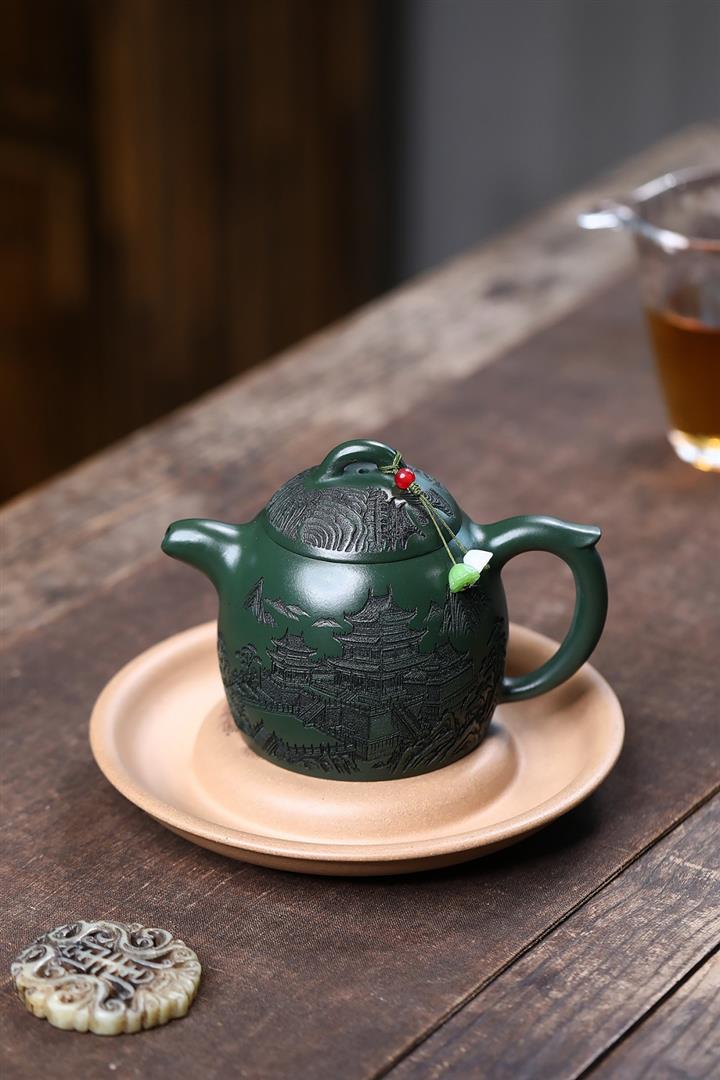 降坡泥手工刻字蒼晨月夕紫砂壺POT6485