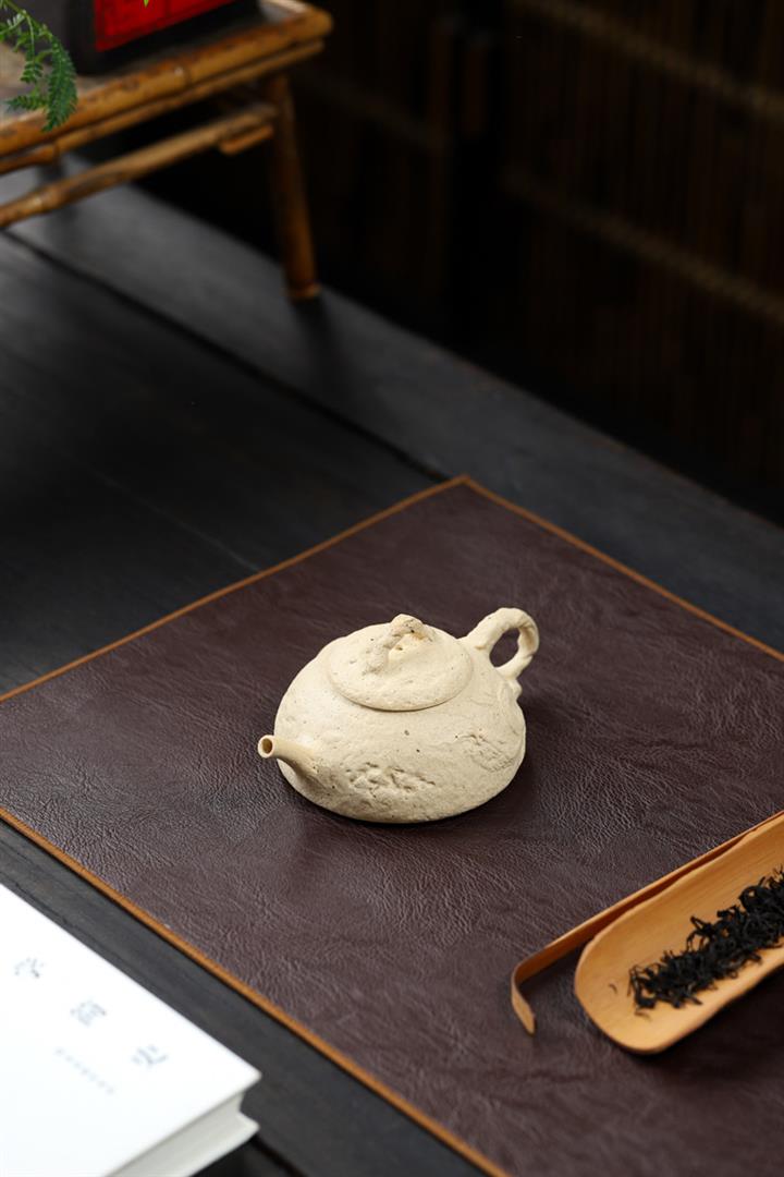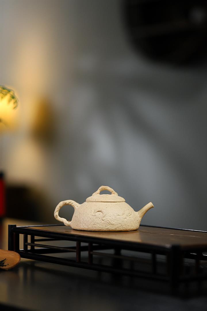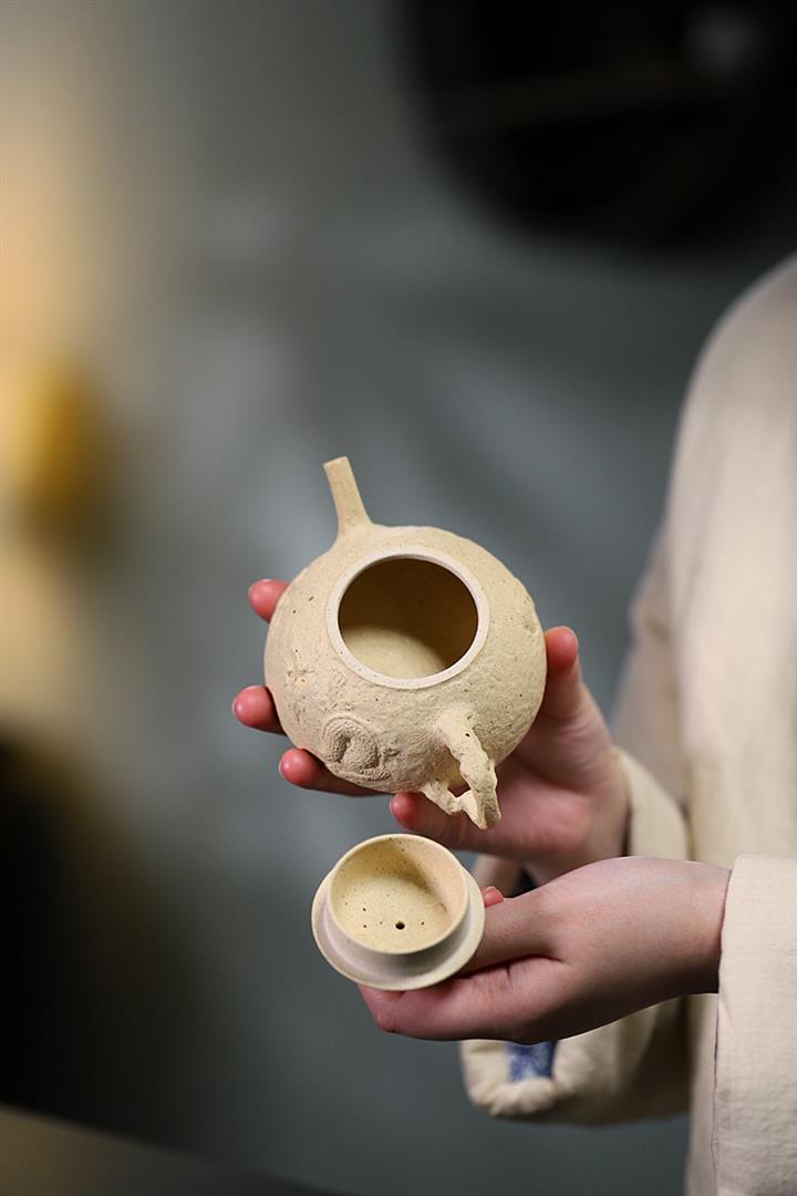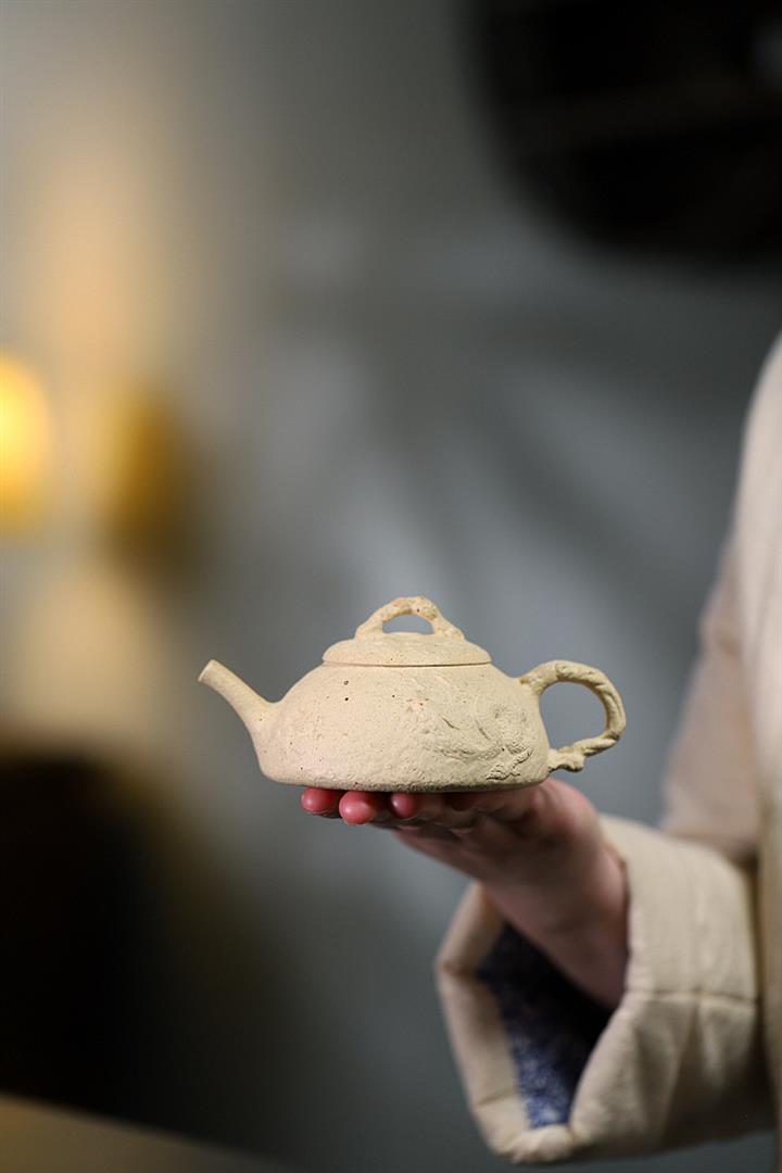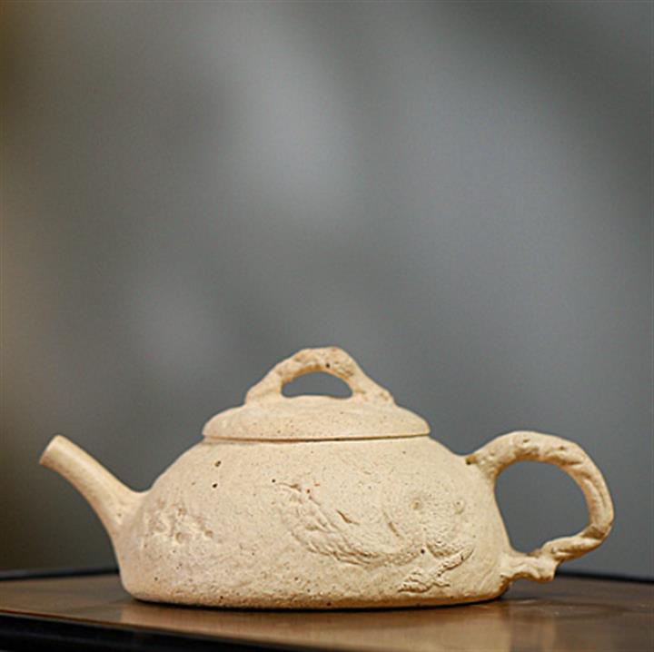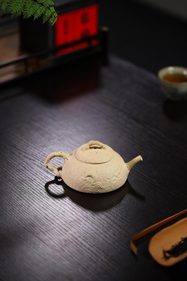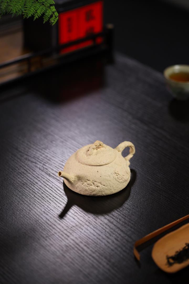 【簡介】壺身有如老樹疙瘩,癭節滿身,不但突顯出其精工細作,亦展現出其深厚的制作功底。該壺色澤古樸,壺鈕為橋形,仿佛壹根老樹枝的造型,與壺身相映成趣。截蓋設計,壺身上下渾然壹體,整器展現了作者精湛的技藝,值得擁有。