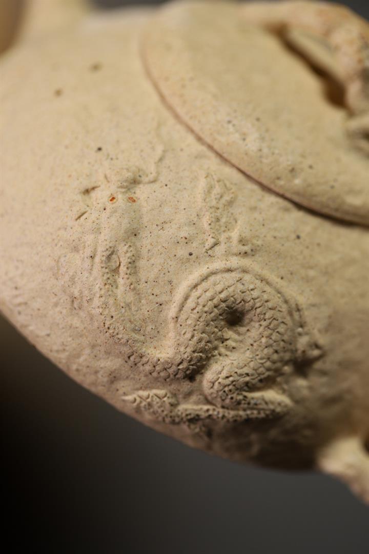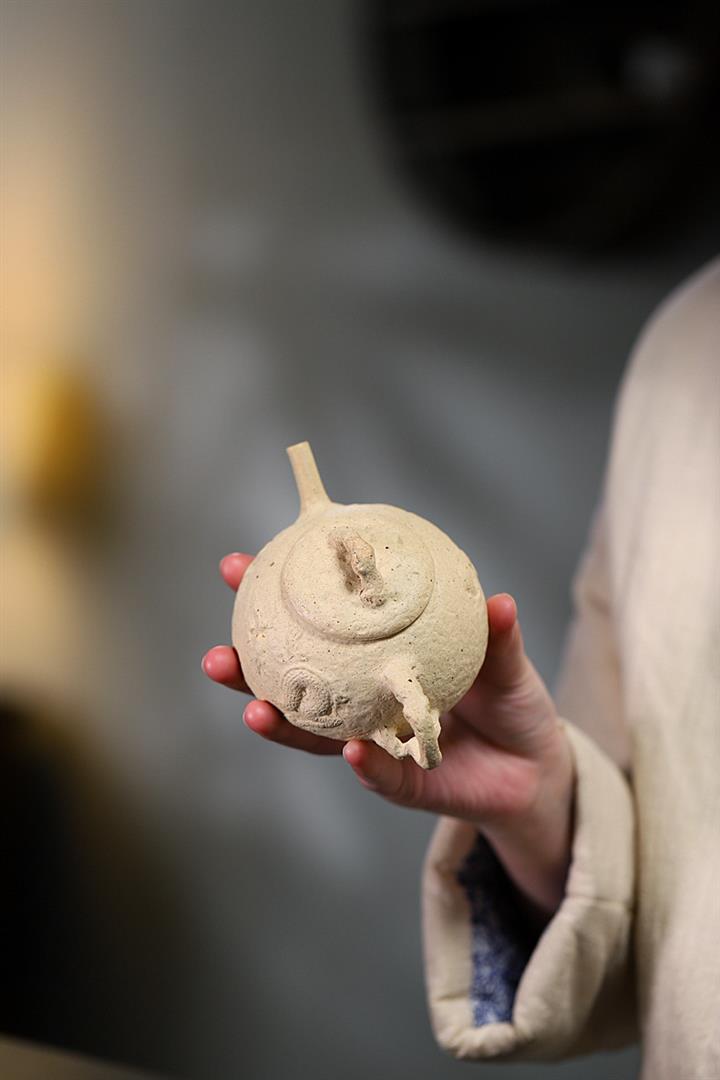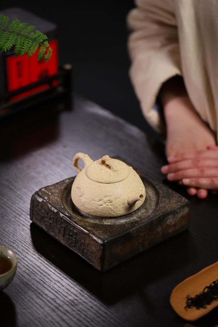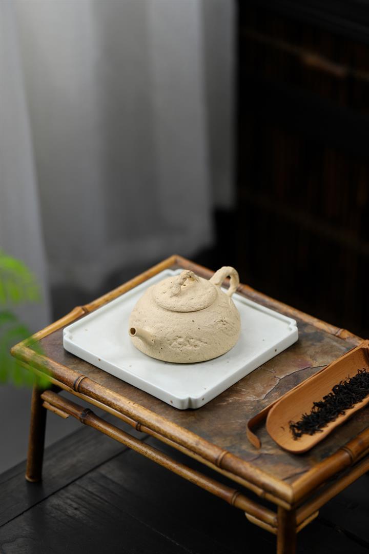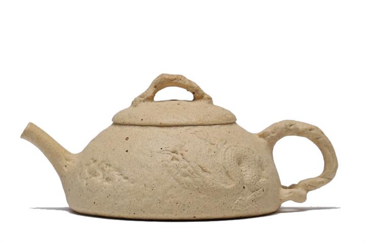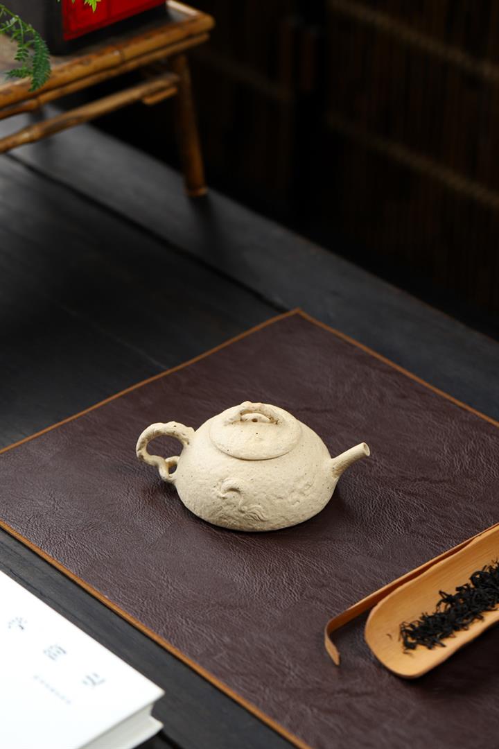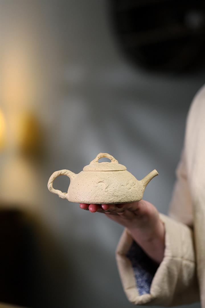 【簡介】壺身有如老樹疙瘩,癭節滿身,不但突顯出其精工細作,亦展現出其深厚的制作功底。該壺色澤古樸,壺鈕為橋形,仿佛壹根老樹枝的造型,與壺身相映成趣。截蓋設計,壺身上下渾然壹體,整器展現了作者精湛的技藝,值得擁有。