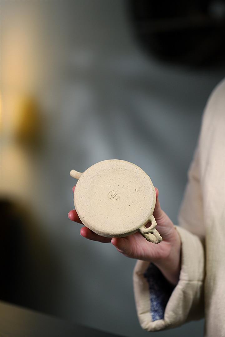 【泥料特點】砂土氣重,似淳實農民,日久使用,漸露鋒芒,養成變化甚大,溫潤莊重。線條優美自然,嘴把搭配協調,身桶配上細長的把搭配,更顯優雅