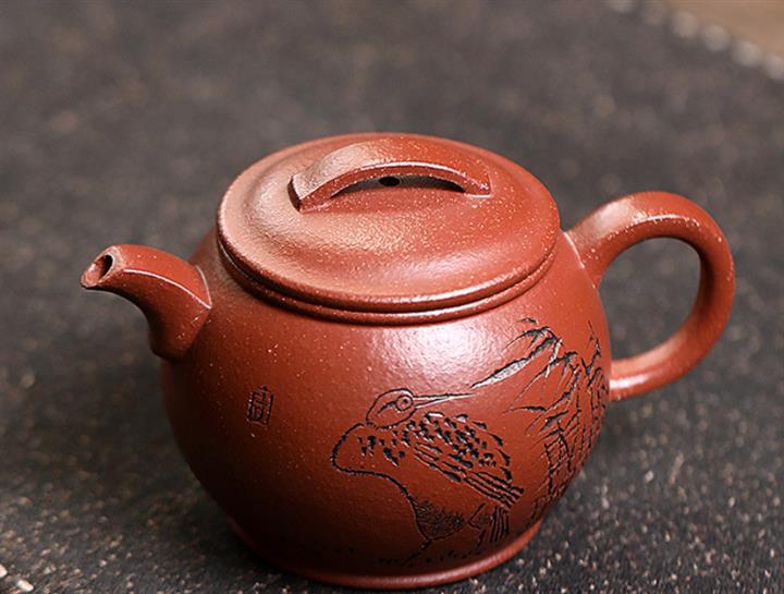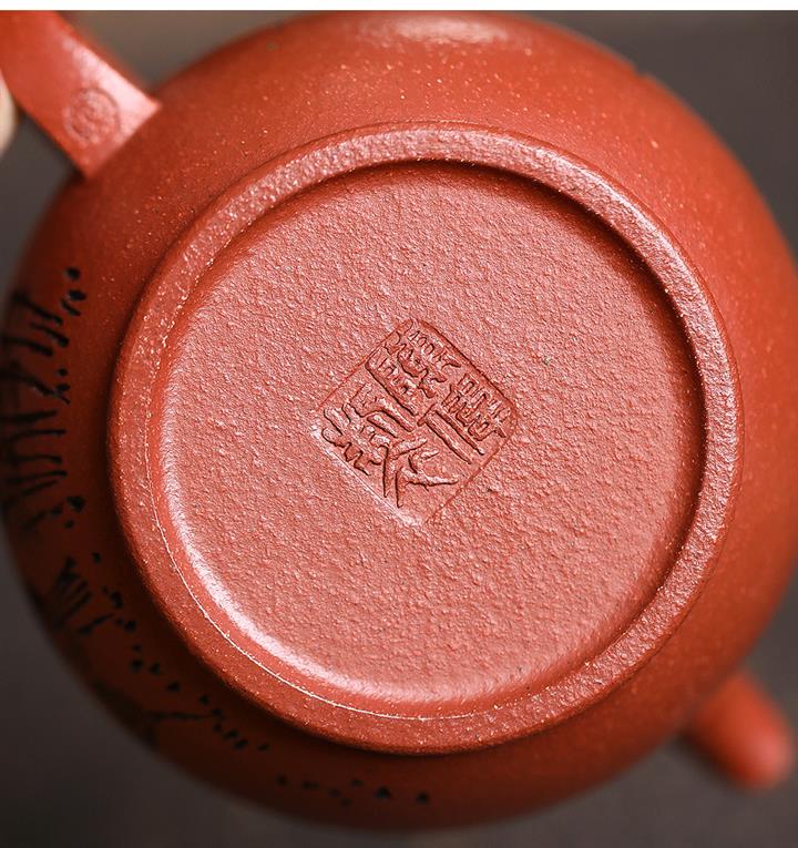 朱泥捂灰金龜換酒手工描金紫砂壺POT6500