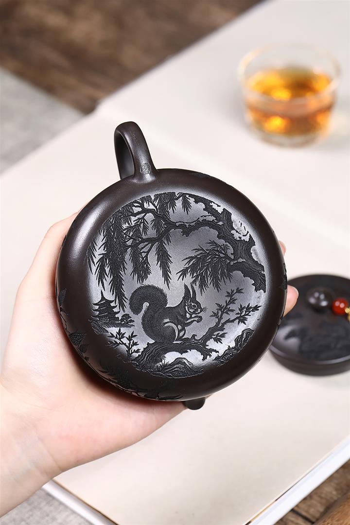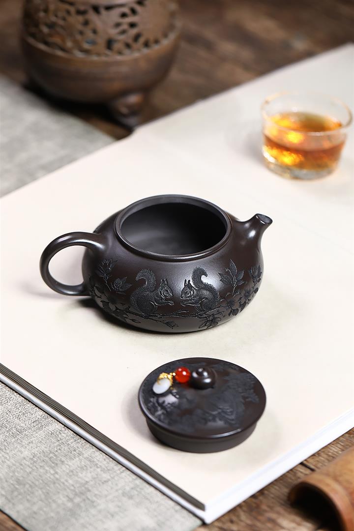 原礦玄鐵石黃松鼠寒江茶壺POT7541