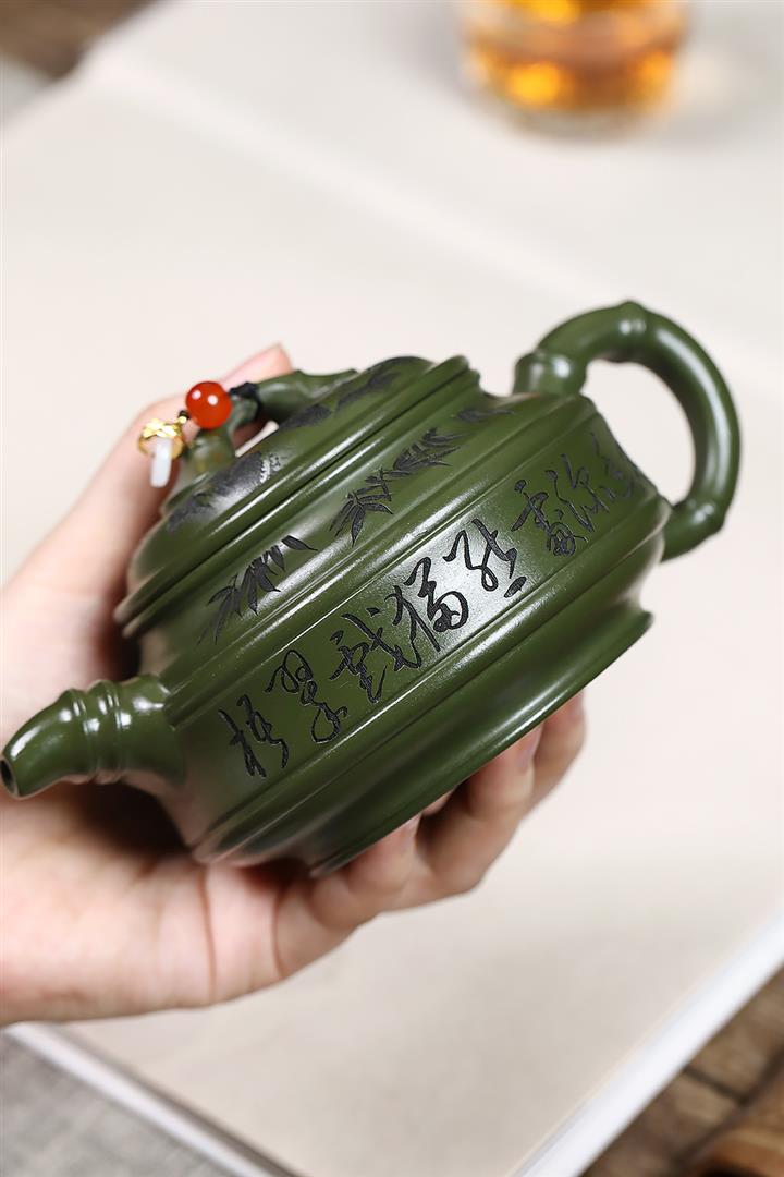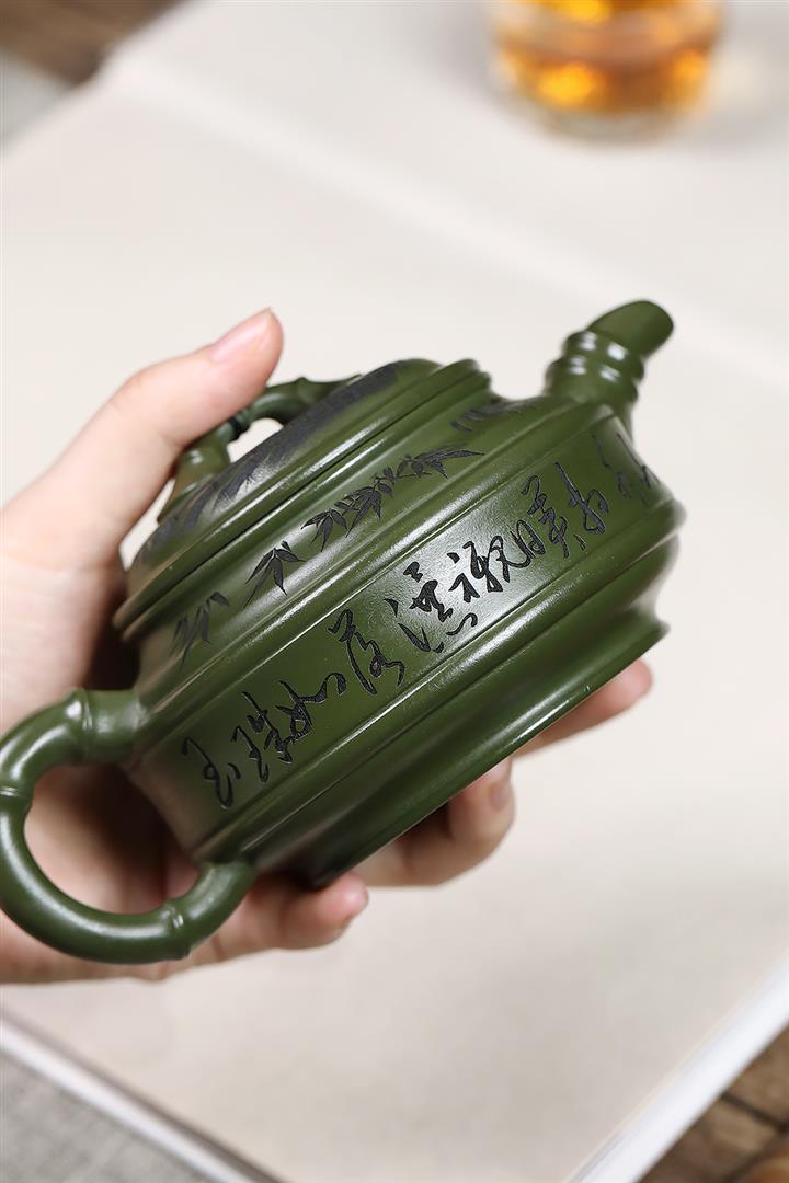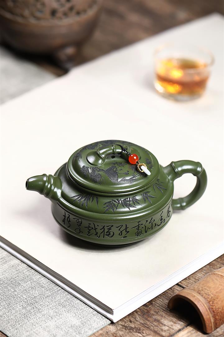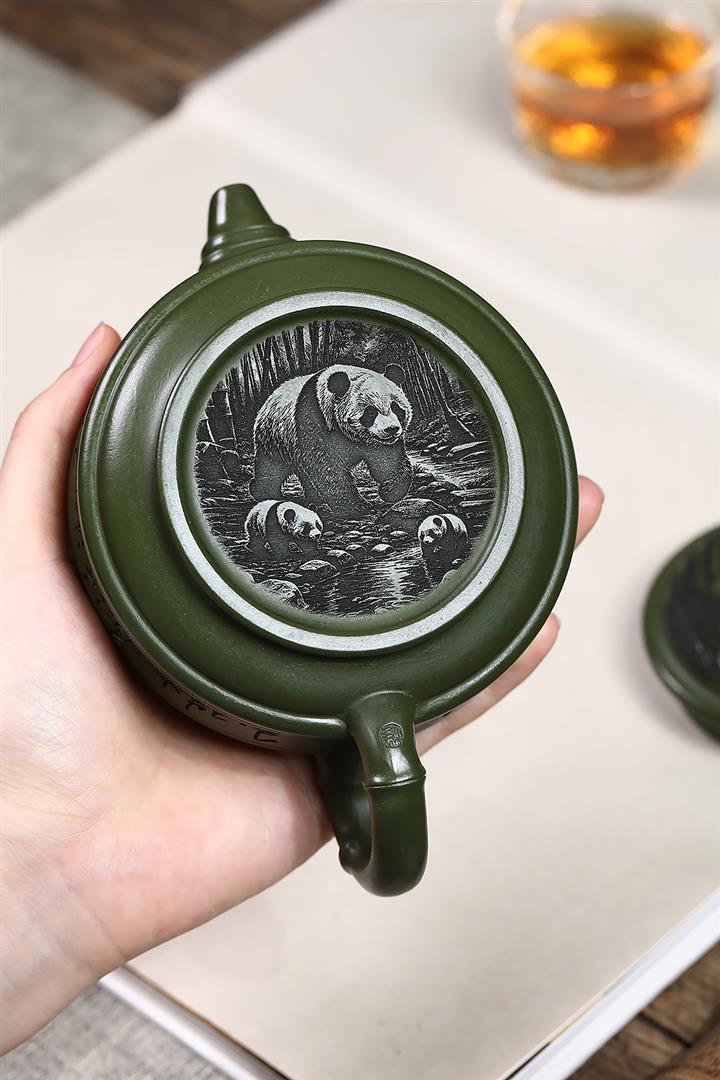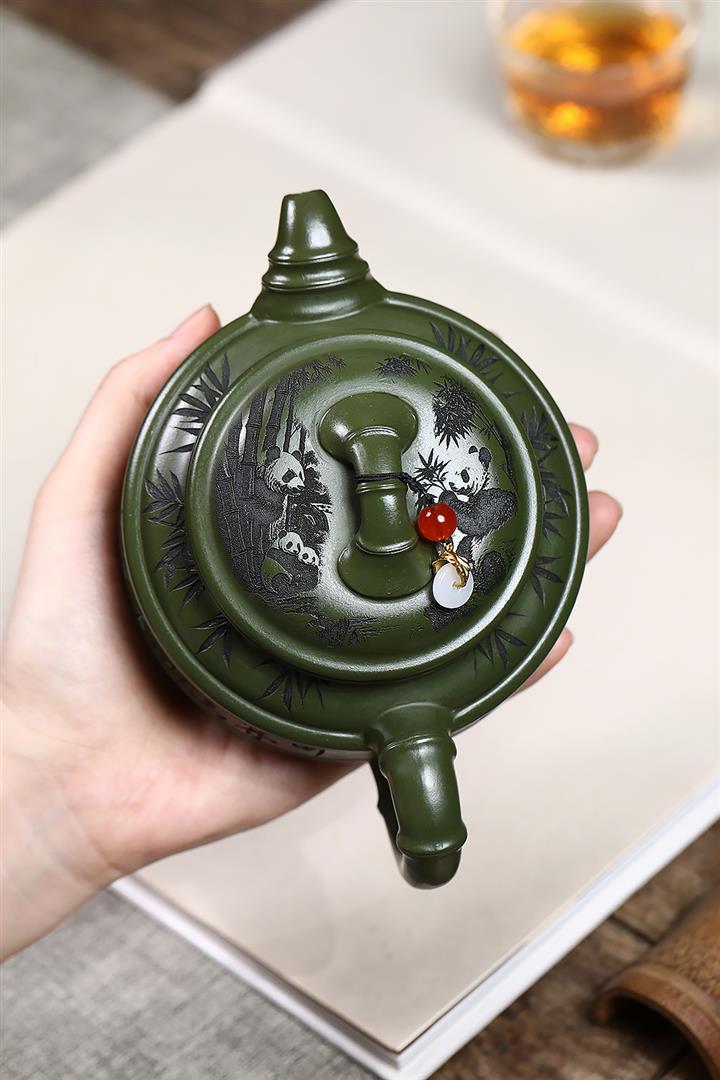 原礦綠泥熊貓雙線竹鼓茶壺POT7545