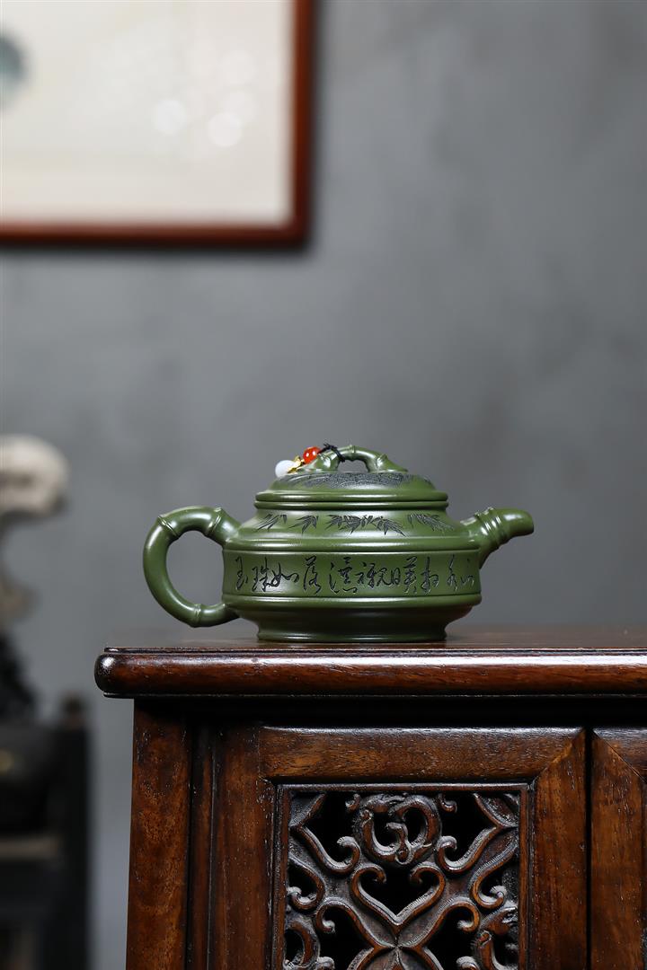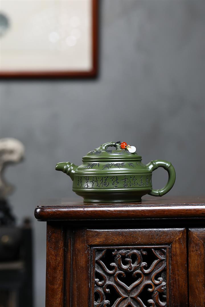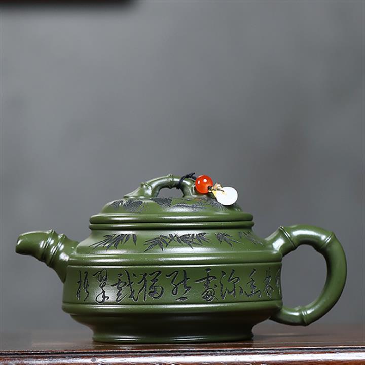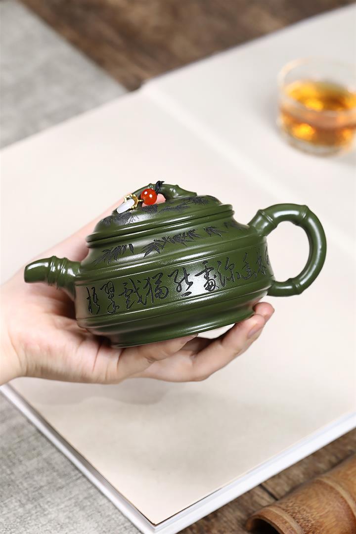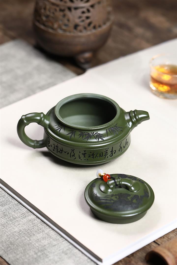 原礦綠泥熊貓雙線竹鼓茶壺POT7545