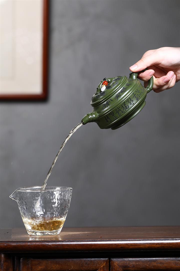 紫砂使用越久,壺身色澤越發光亮照人,氣韻溫雅。紫砂壺長久使用器身會因撫摸擦拭,變得越發溫潤光澤!
