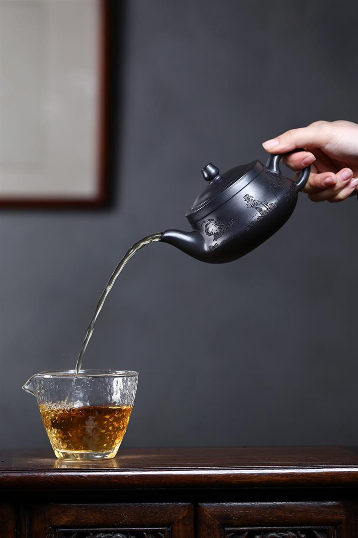 紫砂使用越久,壺身色澤越發光亮照人,氣韻溫雅。紫砂壺長久使用器身會因撫摸擦拭,變得越發溫潤光澤!
