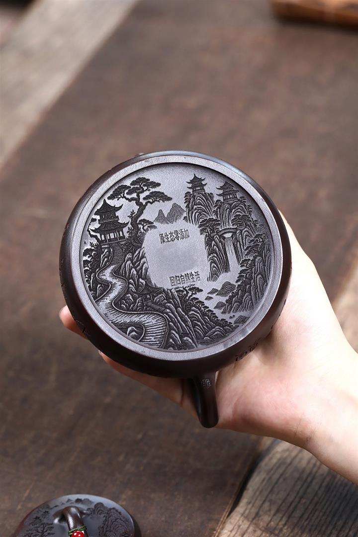 原礦古銅烏泥菱花周盤茶壺POT6991