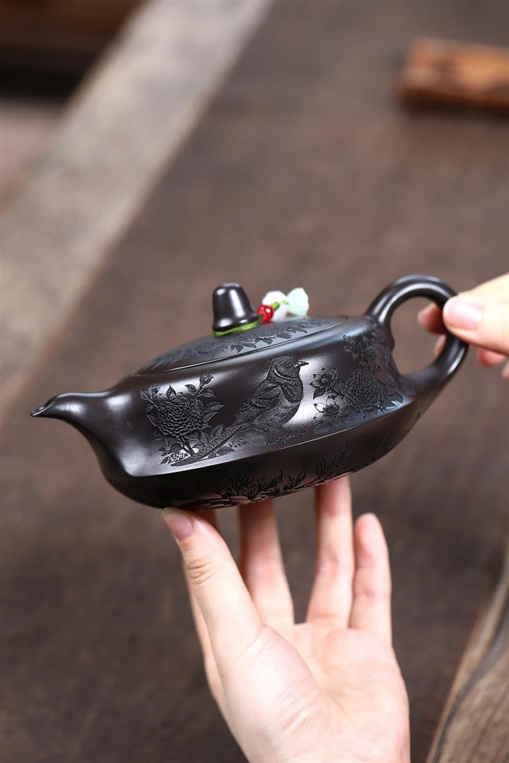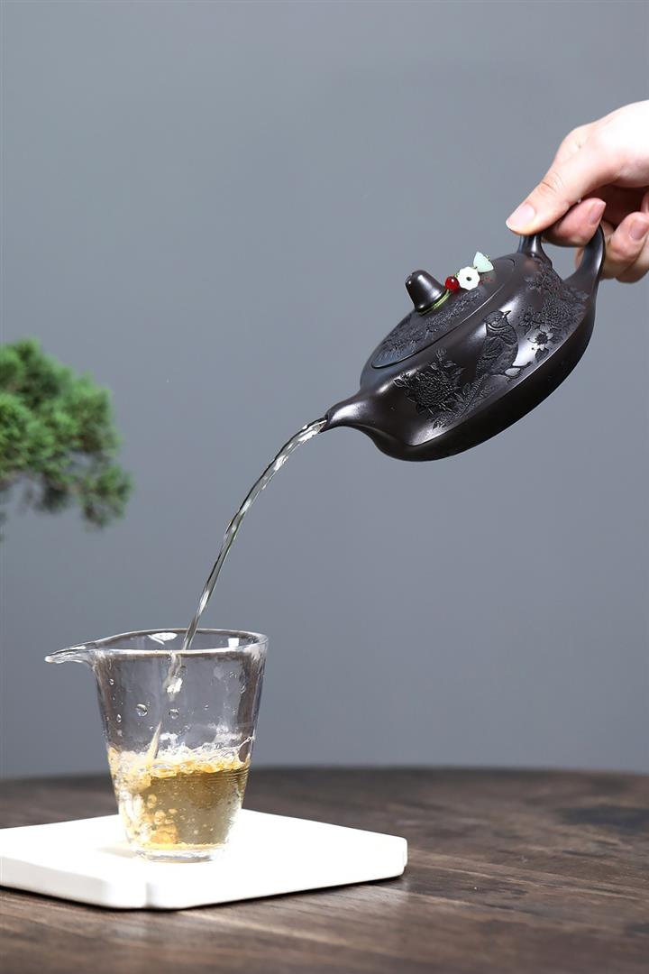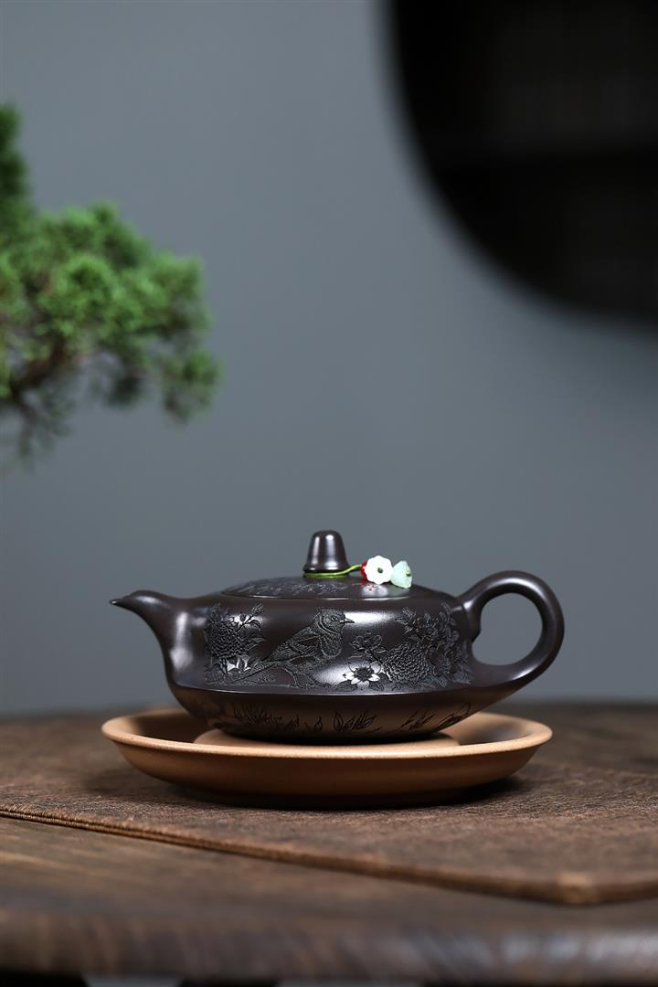 紫砂使用越久,壺身色澤越發光亮照人,氣韻溫雅。紫砂壺長久使用器身會因撫摸擦拭,變得越發溫潤光澤!